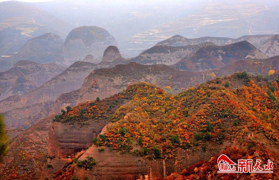 武山秋景,繪就一幅又一幅的七彩山水畫卷。秋葉隨風(fēng)搖曳,村落掩映群林,渭河潺潺遠去,炊煙裊裊升起。在水簾洞、魯班山和楊河等地,山峰巍峨雄壯、重巒疊嶂,由深紅、金黃、橙紅、翠綠交織在一起的秋日勝景,與藍天白云相映成趣,顯得更是壯麗無比。(郭冰凌 攝)