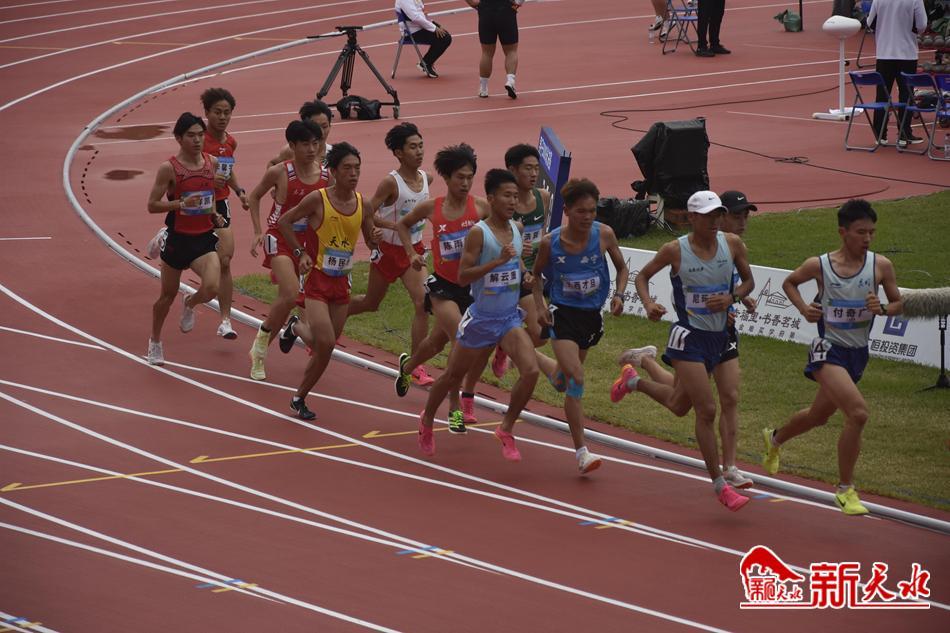 天水運(yùn)動(dòng)員楊民軒(左五)在男子5000米比賽中
