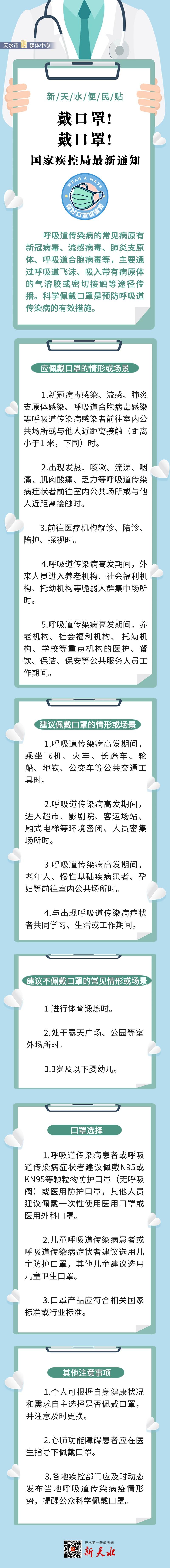 【新天水便民貼】戴口罩!戴口罩!國家疾控局最新通知