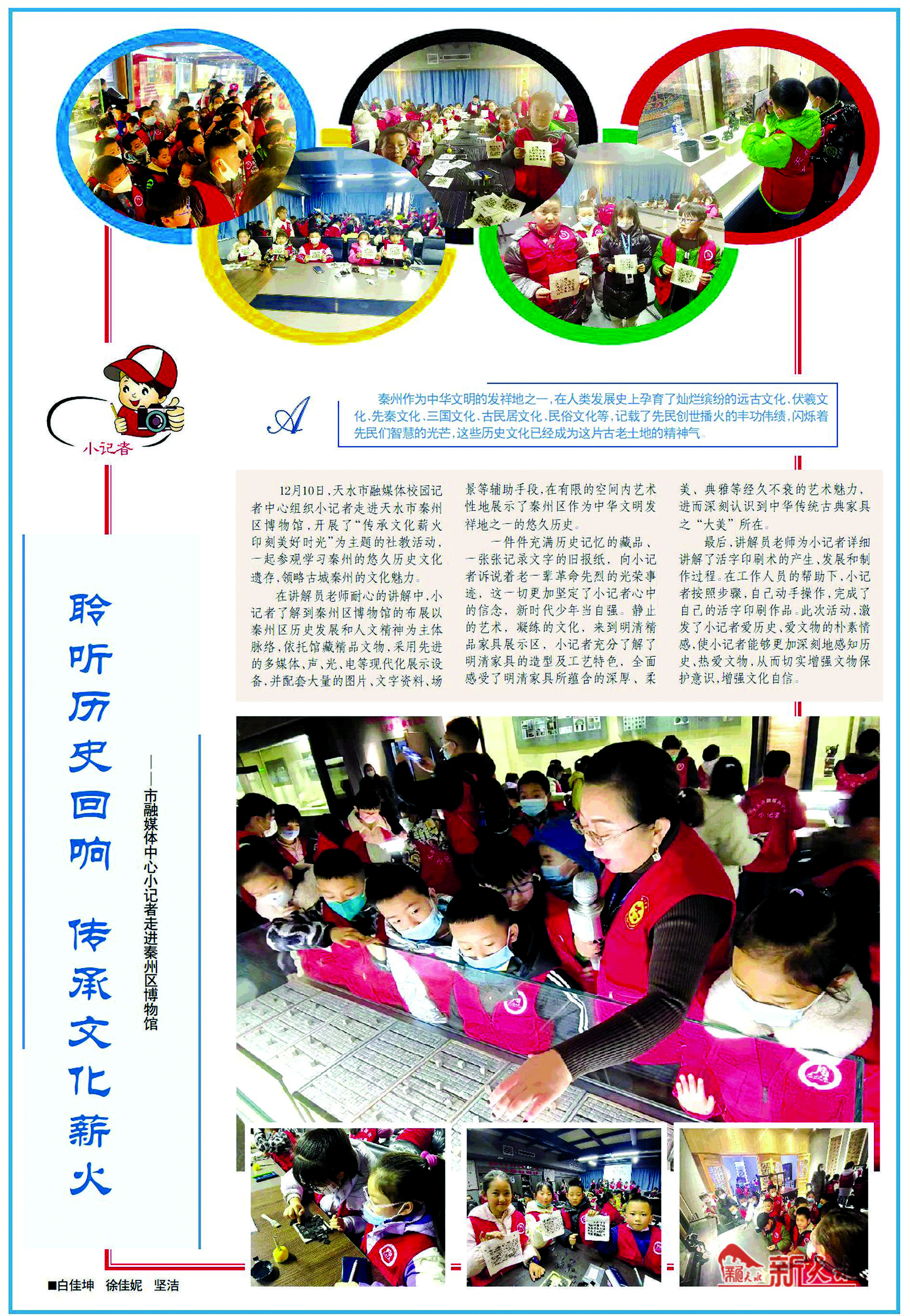 12月10日,天水市融媒體校園記者中心組織小記者走進天水市秦州區(qū)博物館,開展了“傳承文化薪火 印刻美好時光”為主題的社教活動,一起參觀學(xué)習(xí)秦州的悠久歷史文化遺存,領(lǐng)略古城秦州的文化魅力。