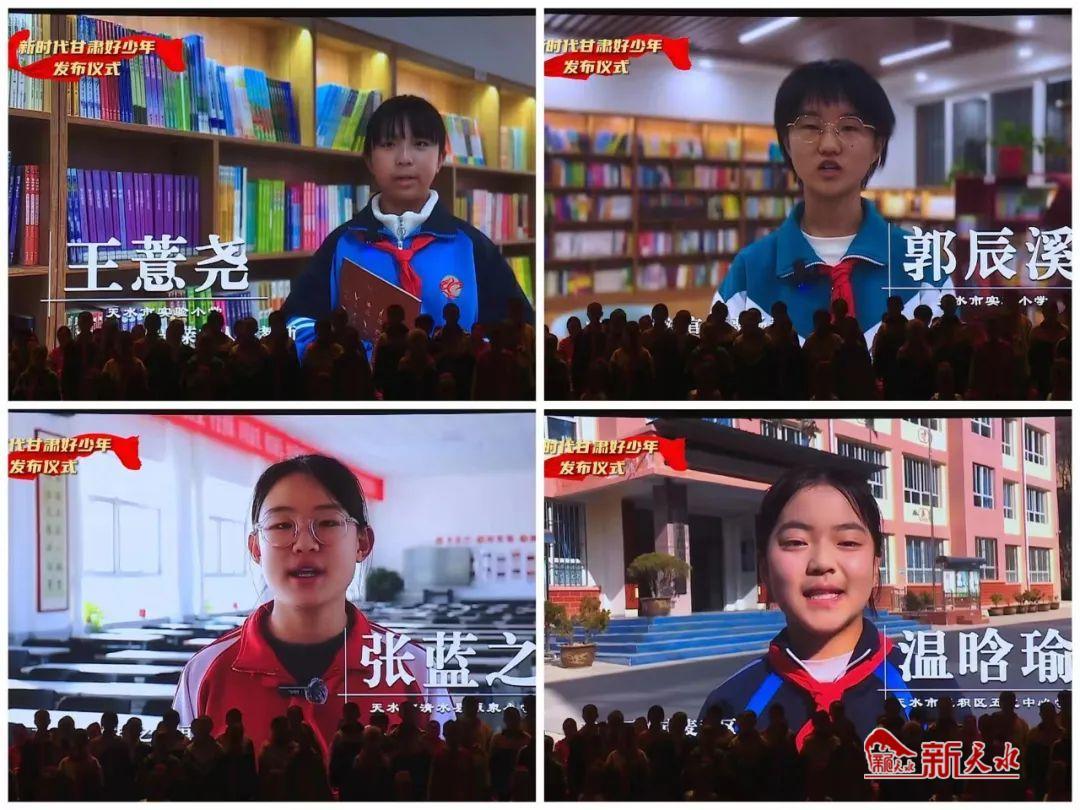 新天水訊 12月8日,2023年度“新時(shí)代甘肅好少年”先進(jìn)事跡發(fā)布儀式在平?jīng)鍪信e行,我市清水縣第三中學(xué)張藍(lán)之、市逸夫?qū)嶒?yàn)中學(xué)郭辰溪、市實(shí)驗(yàn)小學(xué)王薏堯、麥積區(qū)五龍中心學(xué)校溫晗瑜4名同學(xué)榮獲“新時(shí)代甘肅好少年”榮譽(yù)稱號(hào)。