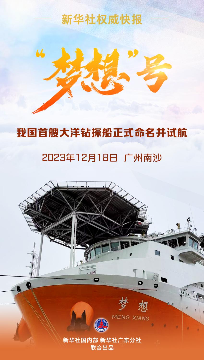 12月18日,我國自主設(shè)計(jì)建造的首艘大洋鉆探船正式命名為“夢(mèng)想”號(hào),并在廣州南沙首次試航。
