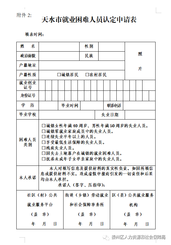 2.天水市就業(yè)困難人員認(rèn)定申請(qǐng)表