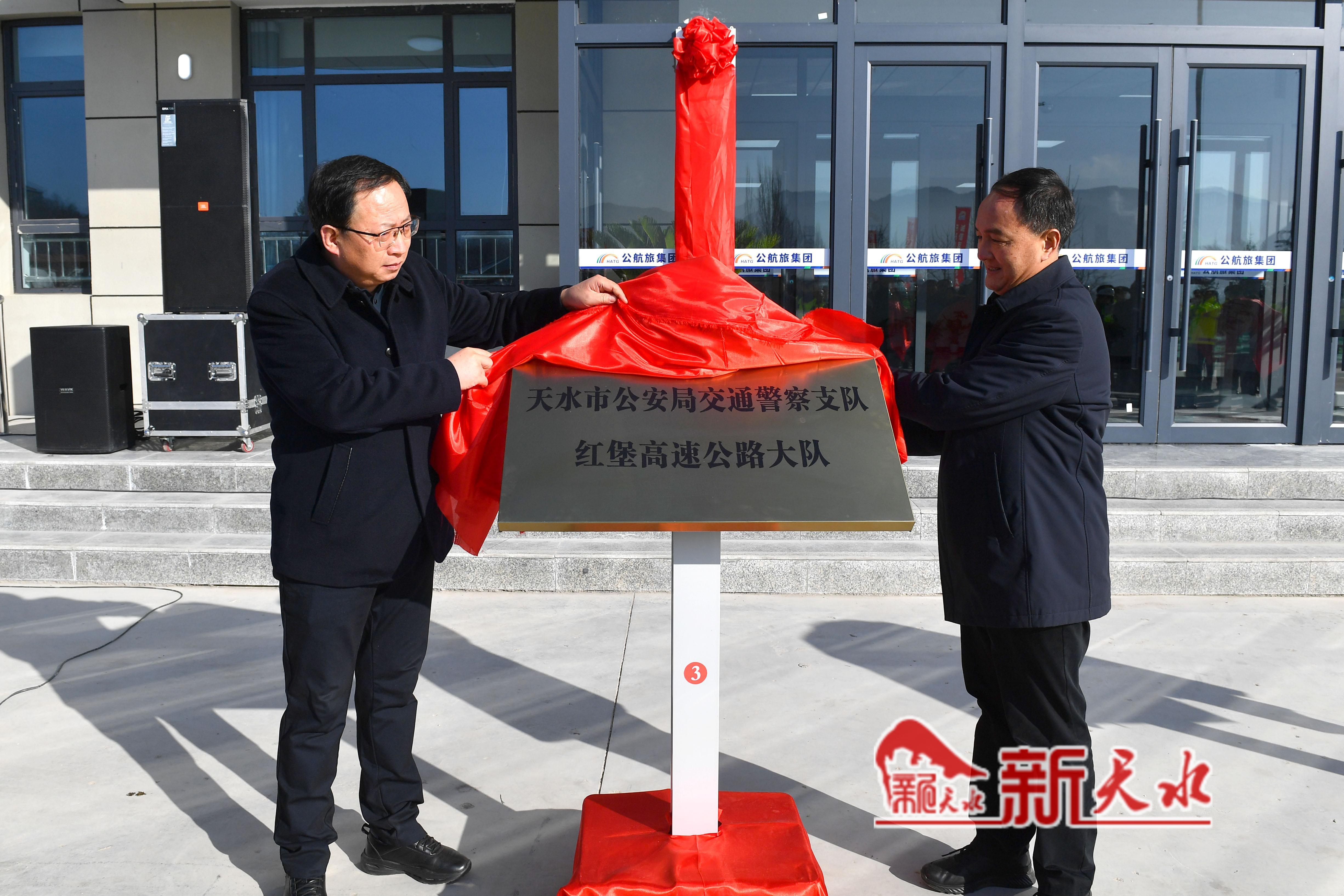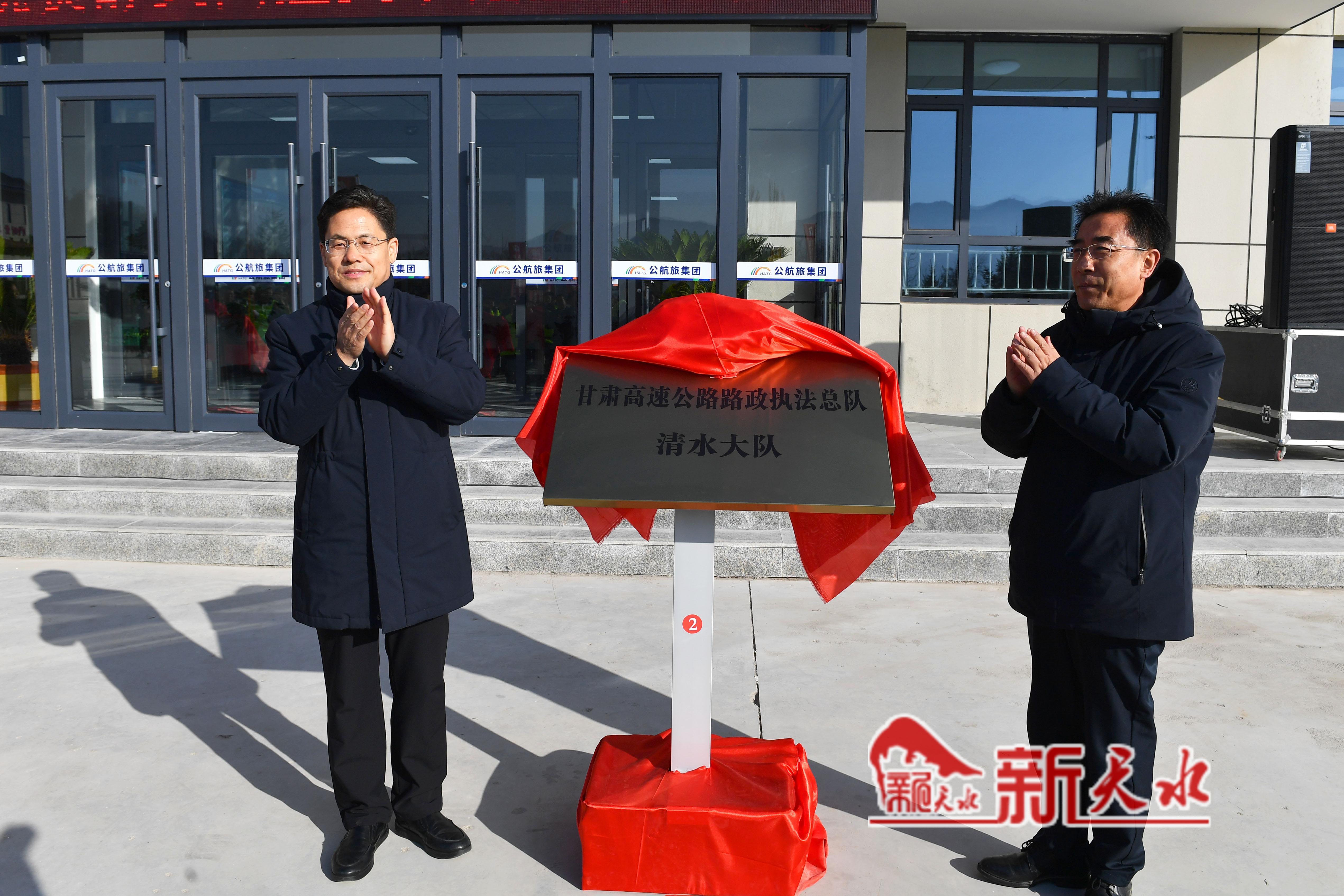 揭牌儀式上,市委書(shū)記馮文戈和省公航旅集團(tuán)黨委書(shū)記、董事長(zhǎng)袁得豪為“靜天高速公路清水收費(fèi)所”揭牌;市委副書(shū)記、市長(zhǎng)王國(guó)先和省交通運(yùn)輸廳副廳長(zhǎng)石華雄為“甘肅省高速公路路政執(zhí)法總隊(duì)清水大隊(duì)”揭牌;省民航機(jī)場(chǎng)集團(tuán)黨委書(shū)記、董事長(zhǎng)王貴玉和市委常委、秘書(shū)長(zhǎng)張慶利為“天水市公安局交警支隊(duì)紅堡高速公路大隊(duì)”揭牌。