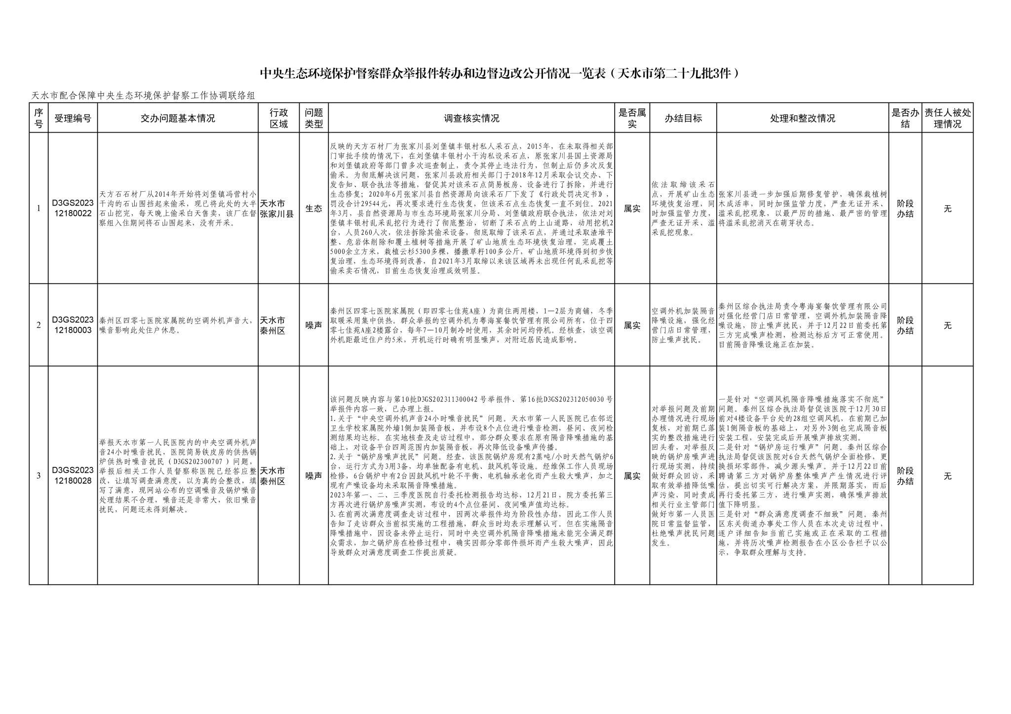 中央第四生態(tài)環(huán)境保護(hù)督察組交辦天水市第二十九、三十批群眾舉報件邊督邊改情況