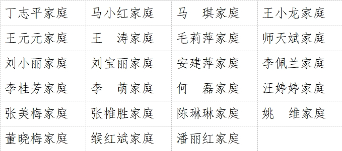 為深入貫徹落實(shí)習(xí)近平總書(shū)記關(guān)于注重家庭家教家風(fēng)建設(shè)的重要論述精神,傳承和弘揚(yáng)中華民族家庭美德,營(yíng)造崇廉尚德、向善向上的新風(fēng)正氣,推動(dòng)社會(huì)主義核心價(jià)值觀在家庭落地生根,助力全國(guó)文明城市創(chuàng)建工作,根據(jù)市紀(jì)委、市委政法委、市文明辦、市婦聯(lián)《關(guān)于開(kāi)展“德潤(rùn)萬(wàn)家”尋找“最美家庭”活動(dòng)的通知》要求,按照相關(guān)條件和程序,經(jīng)自下而上推薦與嚴(yán)格審查篩選,擬確定2023年第三、四季度全市最美家庭候選名單?,F(xiàn)予以公示,接受社會(huì)監(jiān)督。