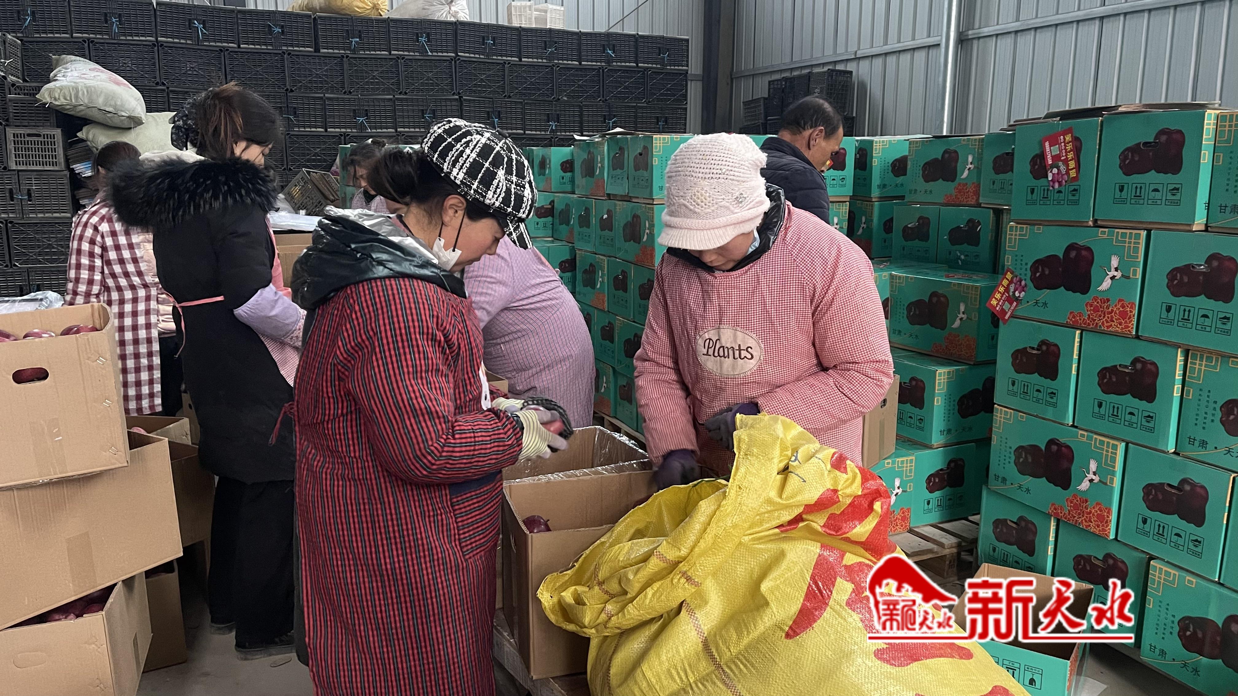 近期,在各個果庫現(xiàn)場,蘋果銷售異?;鸨?。秦州區(qū)中梁鎮(zhèn)三灣村三聯(lián)果品有限公司是一家以蘋果收購、貯存、銷售為一體的農(nóng)業(yè)產(chǎn)業(yè)化民營企業(yè)。在公司分揀車間,工人們將蘋果經(jīng)過分揀、包裝等程序后進行裝車,一筐筐蘋果即將被運往廣州、深圳、內(nèi)蒙古等地?!叭?lián)果庫的庫存量是450萬斤,目前銷售了100萬斤左右?!比?lián)果品有限公司負(fù)責(zé)人楊根保說。