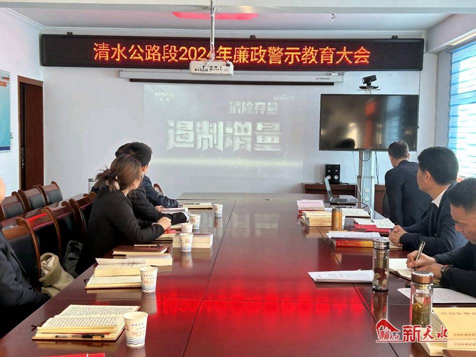 新天水訊【通訊員張?zhí)碚洹?024年新年伊始,清水公路段開(kāi)展新年廉政教育“第一課”,以推動(dòng)黨員干部以新作風(fēng)煥發(fā)新氣象、以新?lián)?dāng)展現(xiàn)新作為。