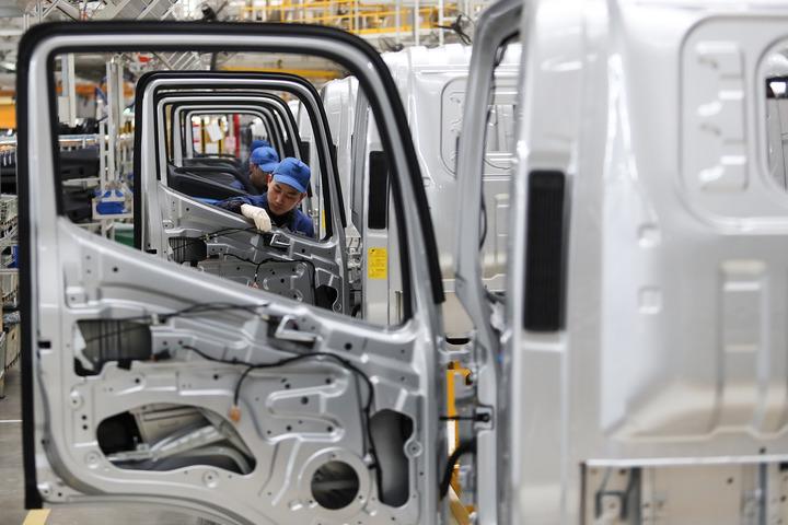 2024年1月8日,河南商丘首批地產(chǎn)新能源輕卡車(chē)下線(xiàn),工人在組裝車(chē)間工作。新華社發(fā)
