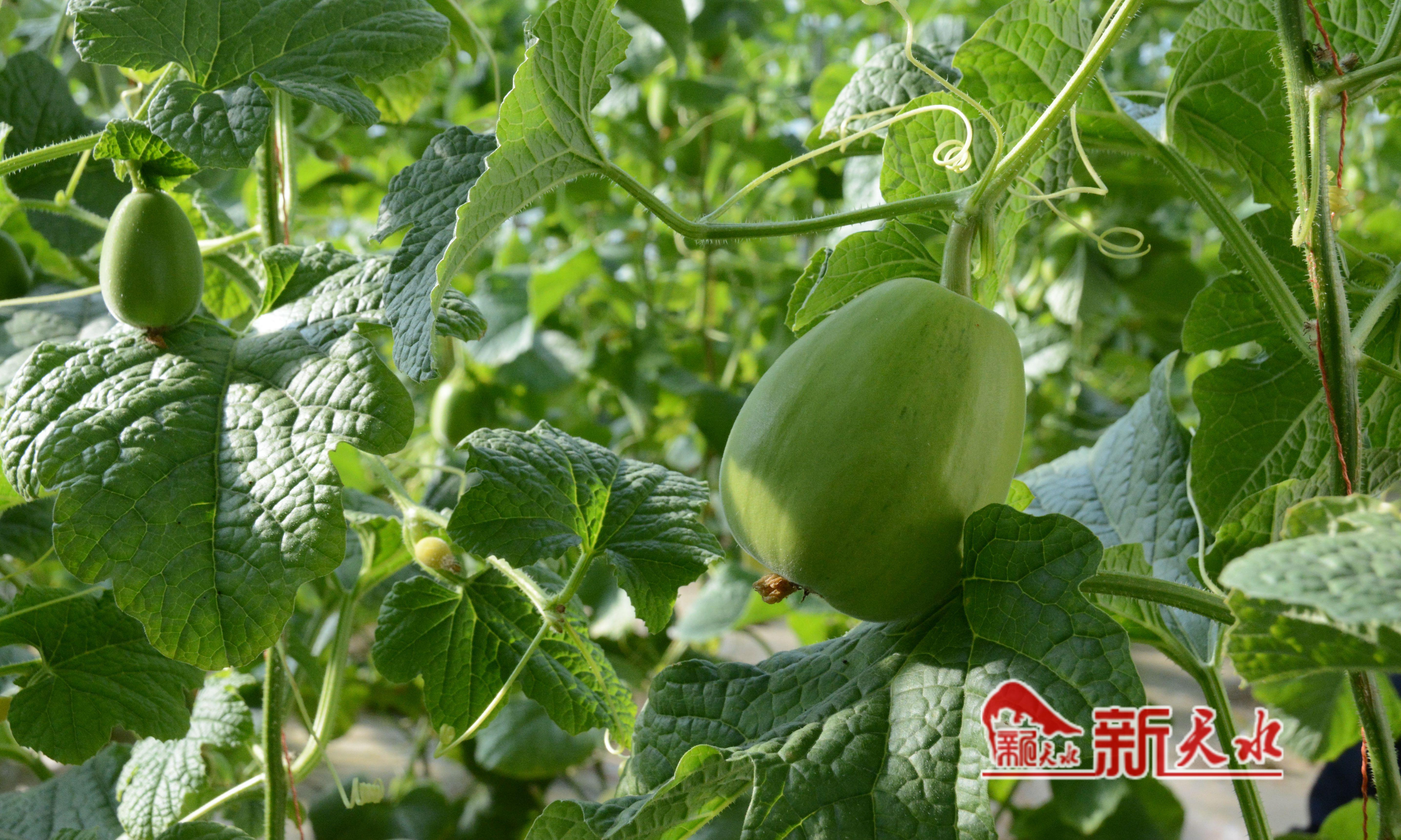 “爬蔓每株長3到4個瓜,但吊蔓每株能長6到7個瓜,產(chǎn)量高了近一倍,目前長勢非常好,一棚預計產(chǎn)量在2000斤到3000斤,收入約18萬元?!焙铝柚菊f。