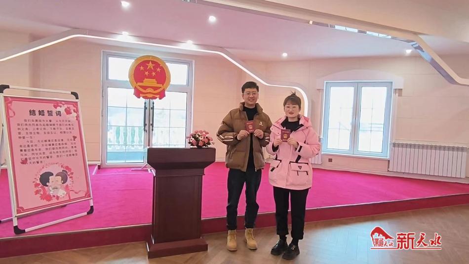 又訊 1月18日,在張家川縣婚姻登記中心頒證大廳,剛領(lǐng)到結(jié)婚證的喜先生牽著新娘子的手激動(dòng)地說:“臘八節(jié)寓意是平安喜樂,被認(rèn)為是中國(guó)具有幸福色彩的傳統(tǒng)節(jié)日之一。在這個(gè)預(yù)示著美好和幸福的日子里辦理結(jié)婚登記,以這個(gè)特殊日子來紀(jì)念我倆的愛情之花?!?/p>