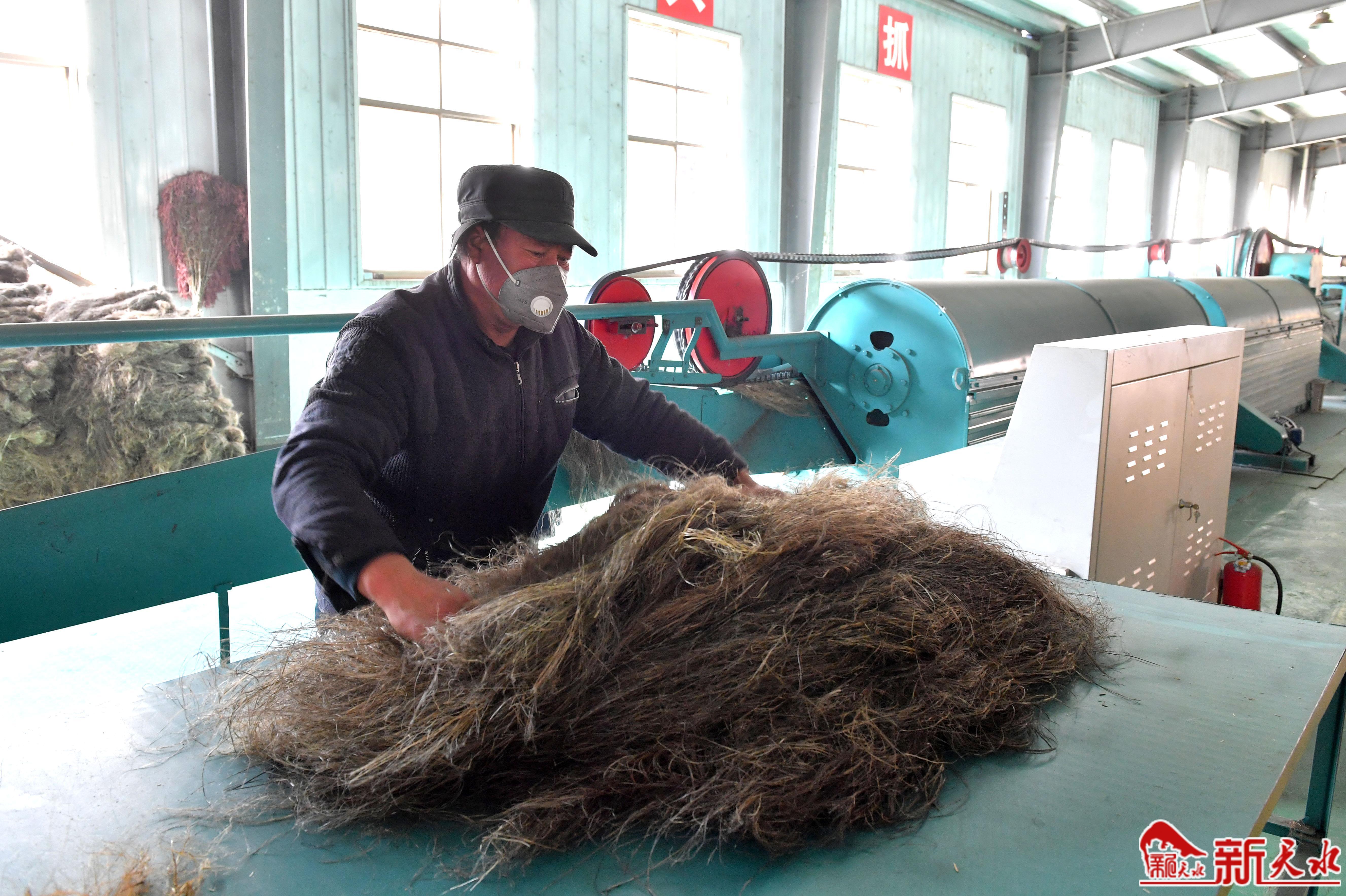 采訪中,記者在甘肅盛裕達(dá)漢麻產(chǎn)業(yè)有限責(zé)任公司的生產(chǎn)加工車間里看到,隨著機(jī)器轟轟作響,1條打麻生產(chǎn)線高速運(yùn)轉(zhuǎn),一縷縷麻纖維從生產(chǎn)線上滾滾而出,工人運(yùn)麻、梳麻、捆麻、打包、轉(zhuǎn)儲,環(huán)環(huán)相接,井然有序……