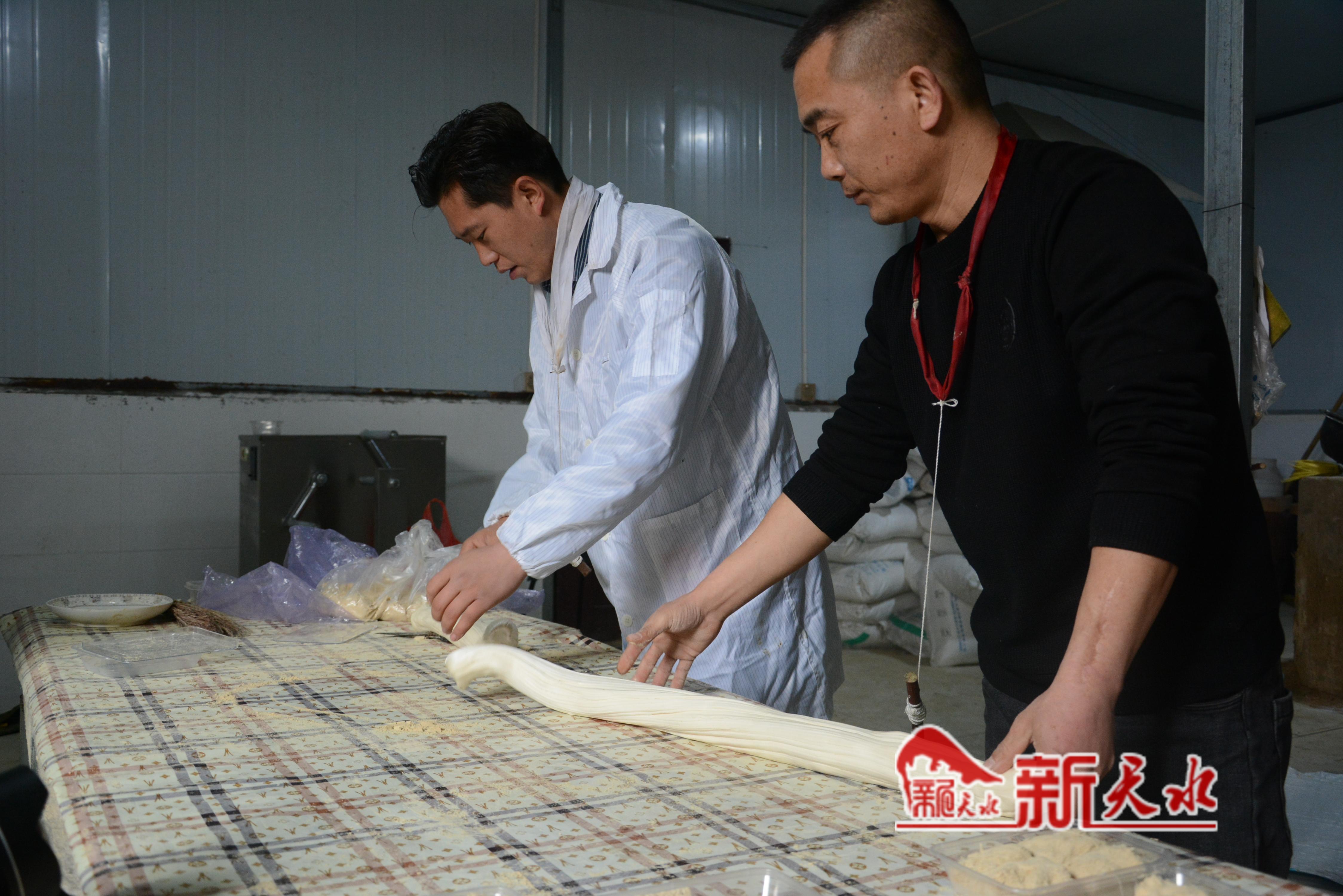 每逢小年,在街頭叫賣的一顆顆灶糖其實并不是用剪子剪切的,而是用繩子勒出來的,這就是具有石佛灶糖特色的勒糖。田覲偉左手握糖條,右手將系有尼龍繩的木柄纏繞在糖條上迅速勒斷,大小均勻的灶糖便散落在操作臺上,然后放進包裝盒。一鍋40斤的糖稀,制作出灶糖、荏板糖等不同的品種,需要6至7人相互配合花費一天的時間。因歷史悠久、工藝精巧,石佛飴糖制作技藝2007年被麥積區(qū)政府列入第一批非遺名錄,2008年被列入市級第二批非遺名錄。