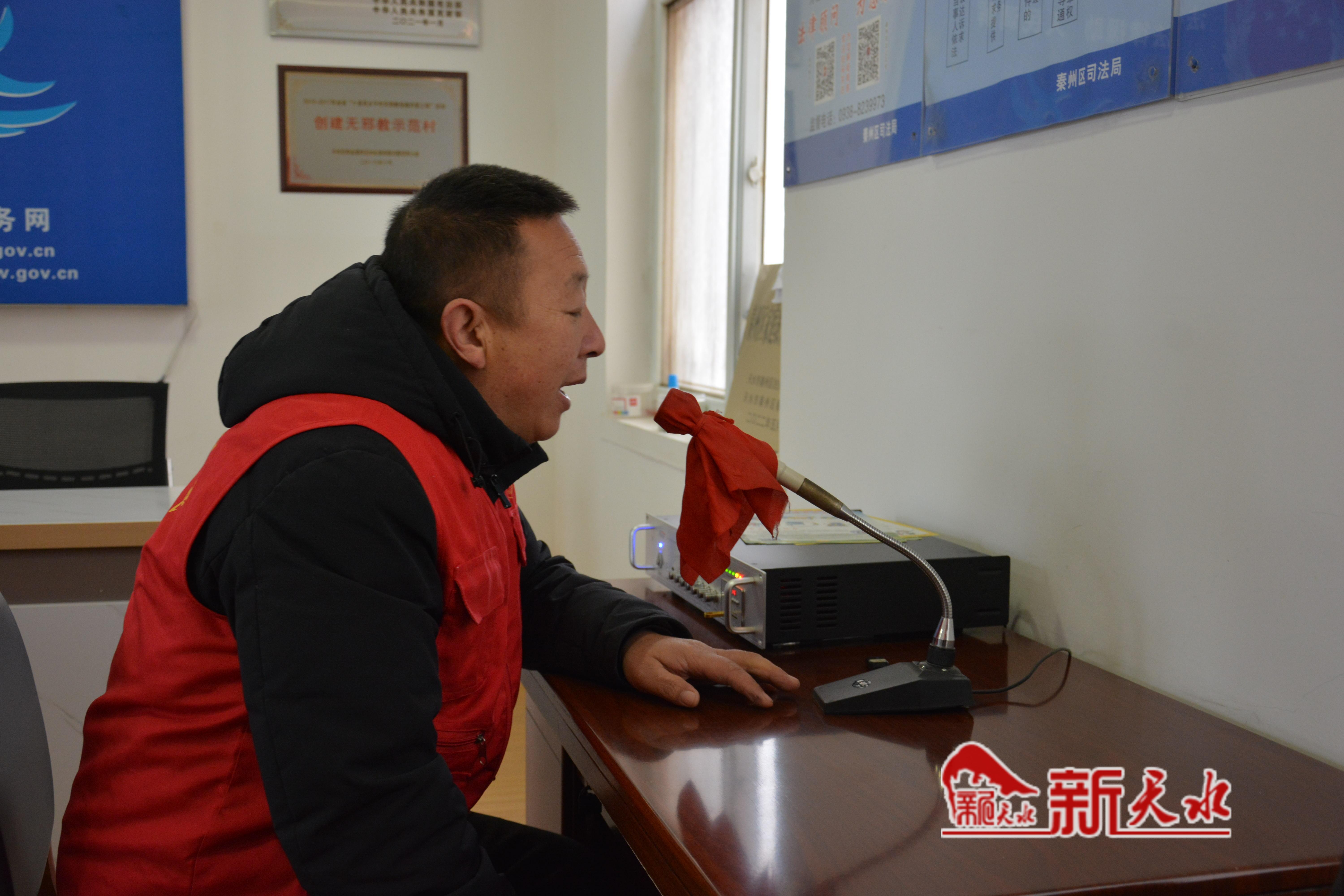“今天天氣有降雪,道路有不同程度結(jié)冰,一般情況下我們不提倡大家外出。實在有外出需要的村民群眾,一定要記得給車上打防滑鏈,保障人身安全是第一位的?!?月21日一大早,在秦州區(qū)皂郊鎮(zhèn)下寨村,一名村干部正在通過村上大喇叭給全村村民宣傳道路交通安全提示工作。