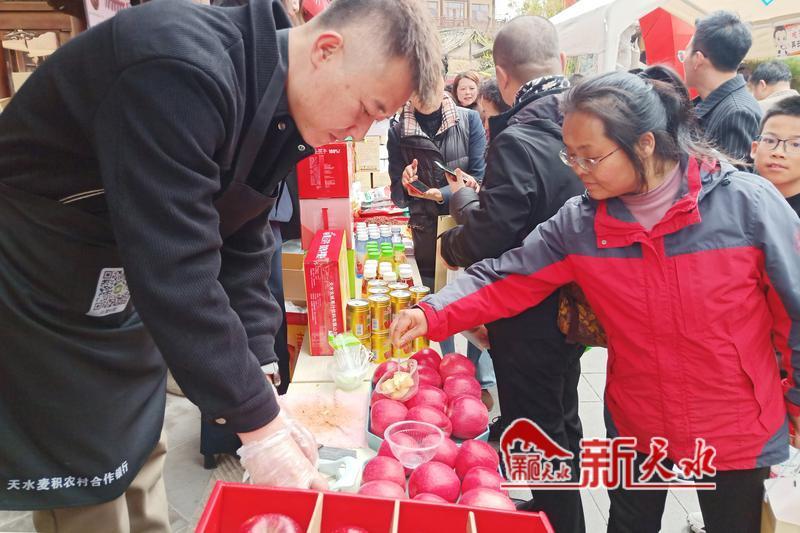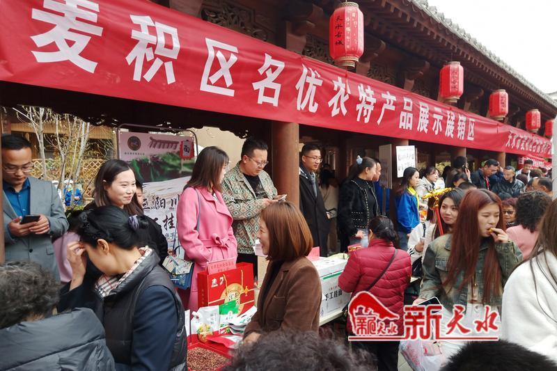 活動(dòng)現(xiàn)場(chǎng),麥積區(qū)的麻辣燙、米線、面皮等特色小吃攤位前,被品嘗、直播和拍照的游客圍得水泄不通;手工掛面、辣椒面、元龍花椒等名優(yōu)農(nóng)特產(chǎn)品,也吸引著許多游客。