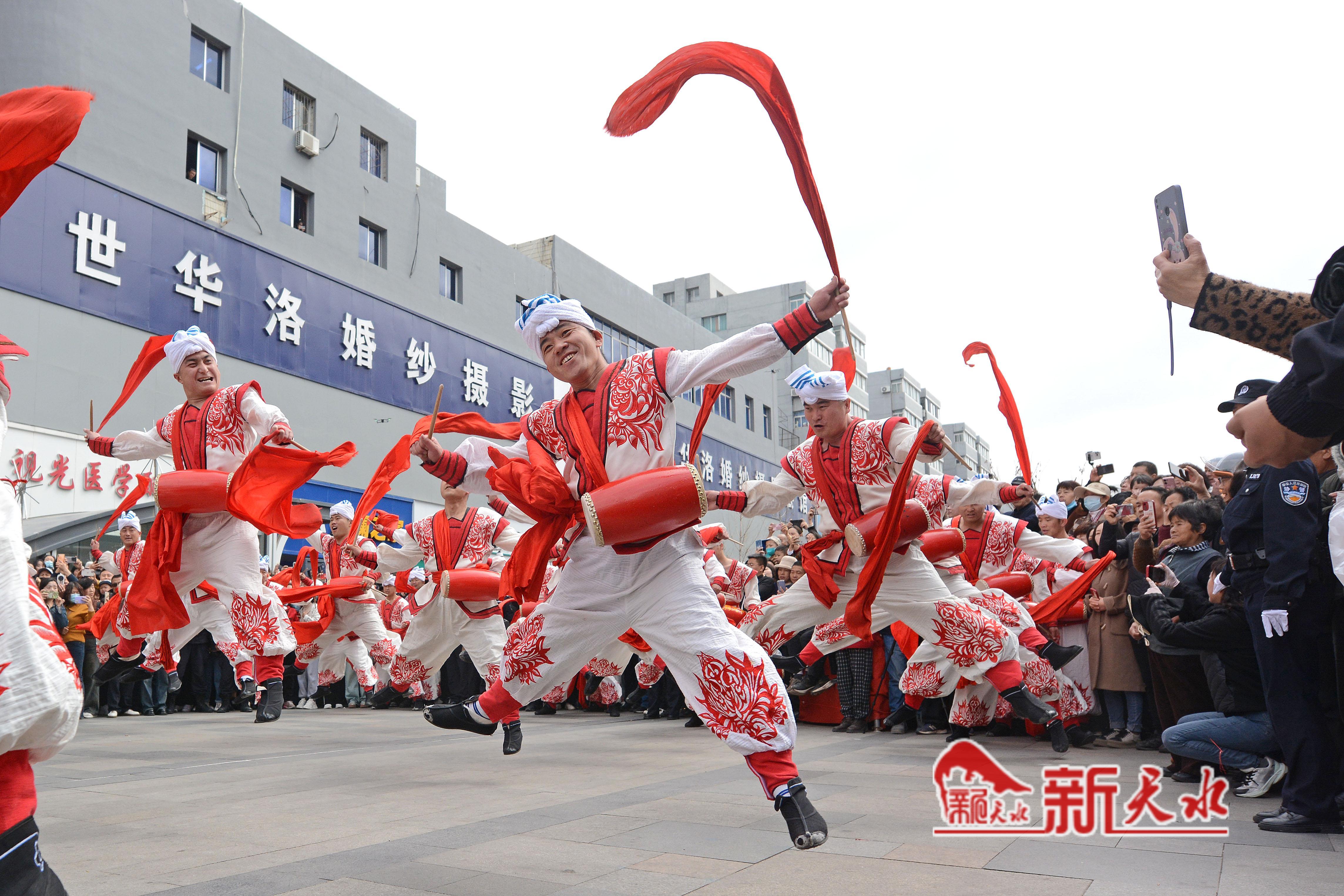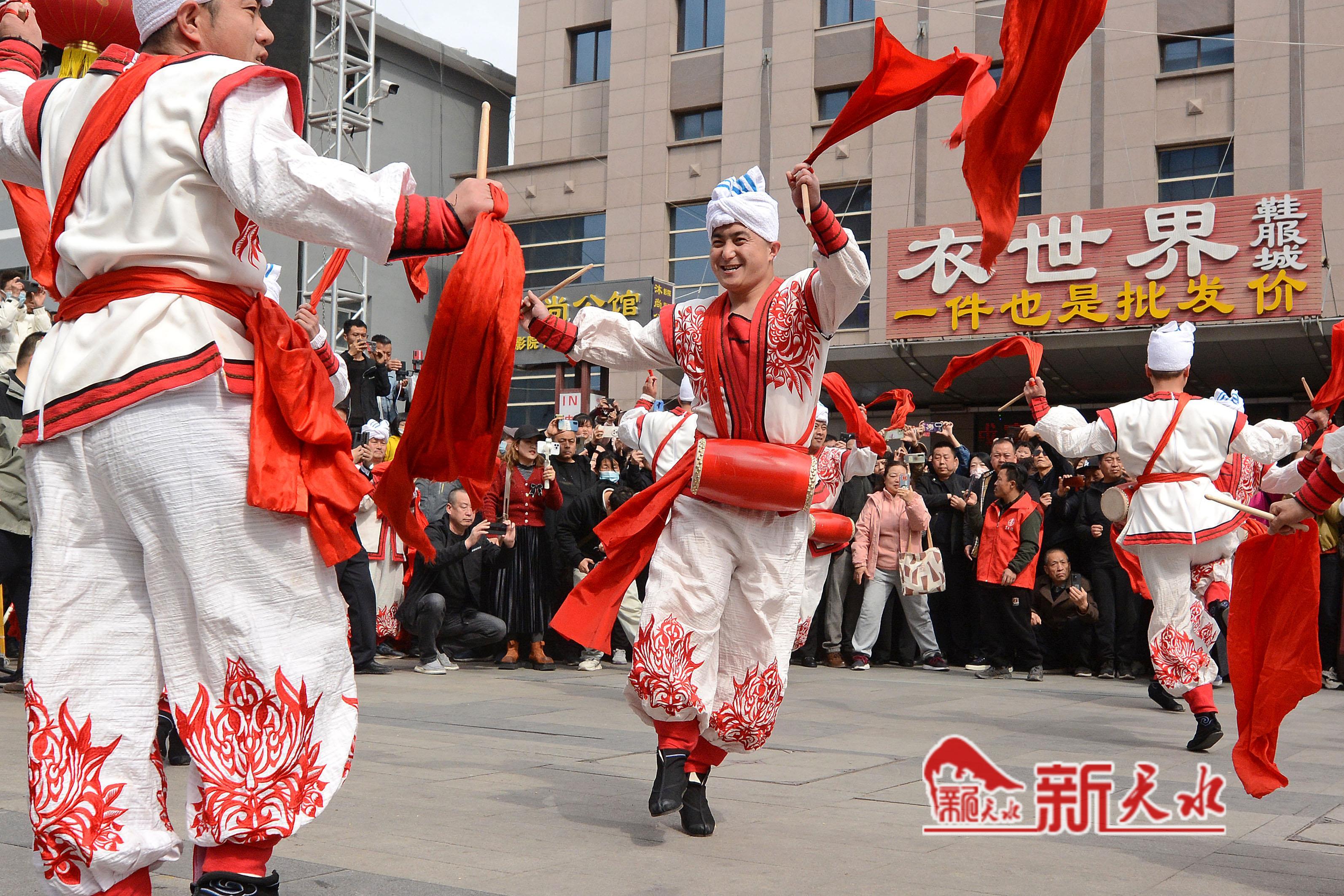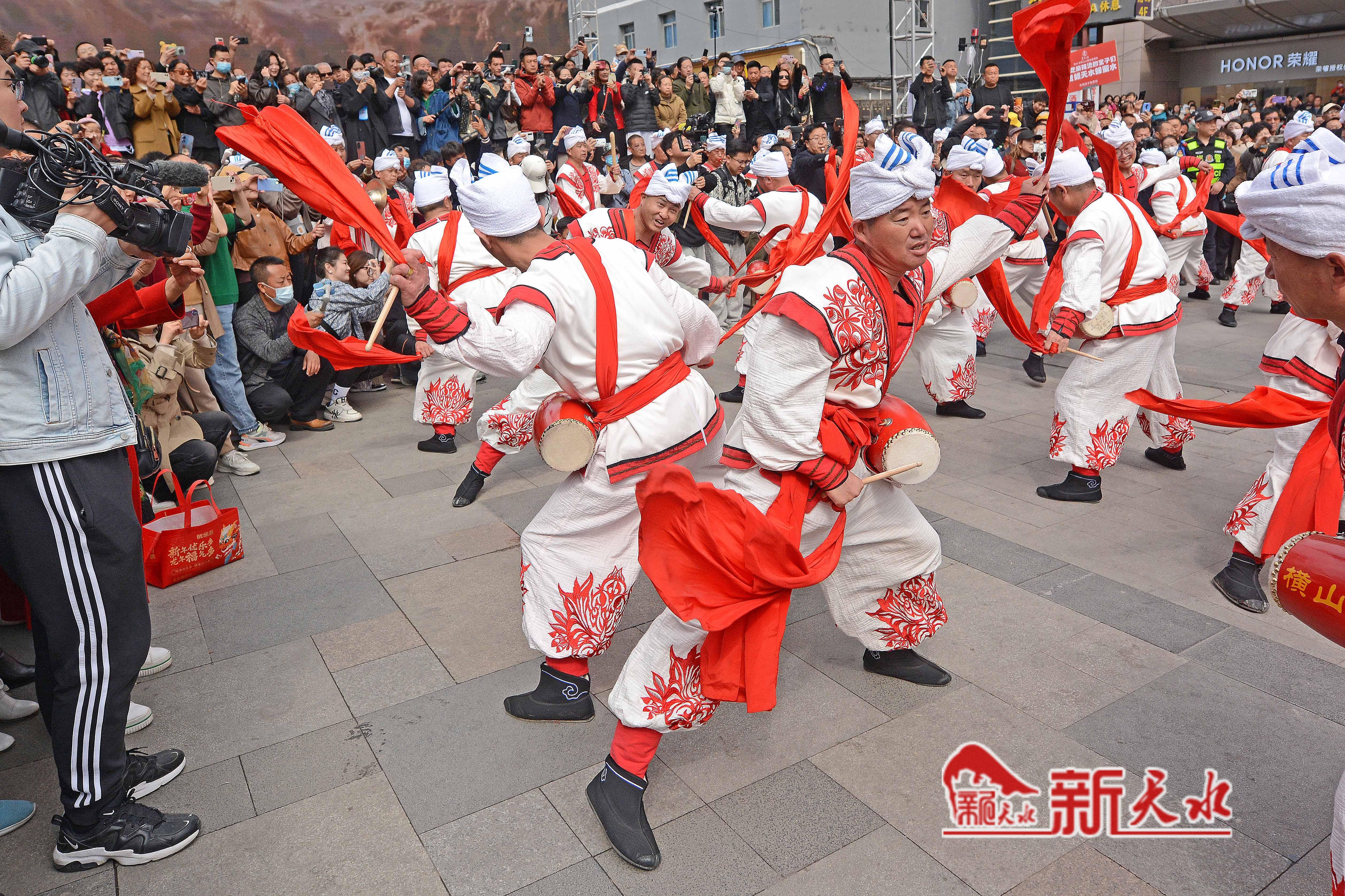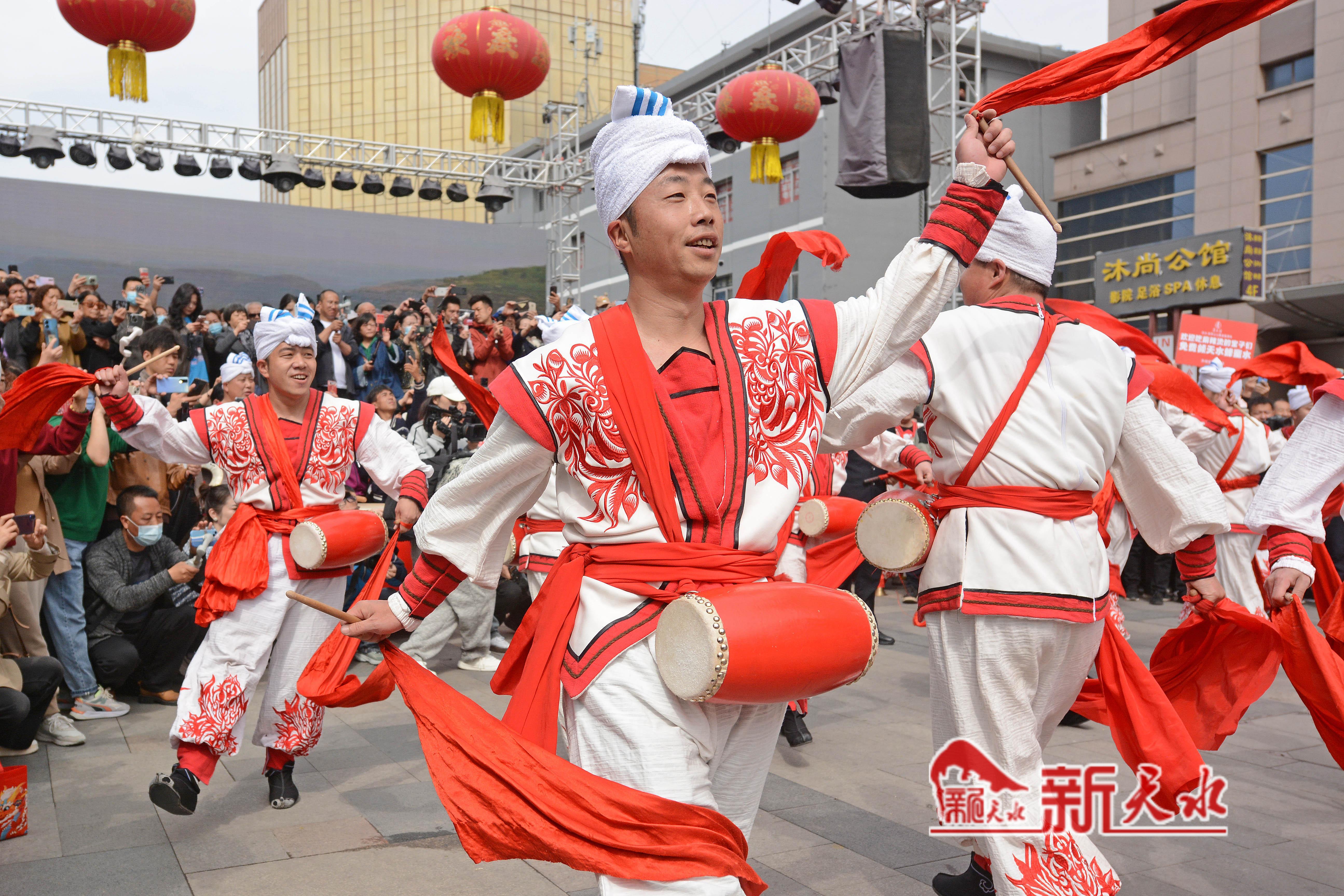 陜甘一家親 榆林橫山老腰鼓為天水麻辣燙鼓勁加油