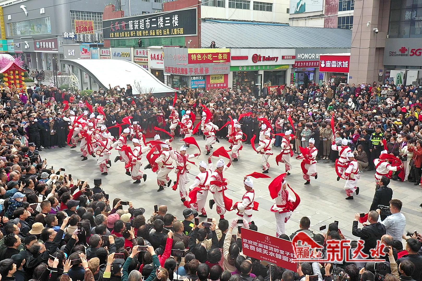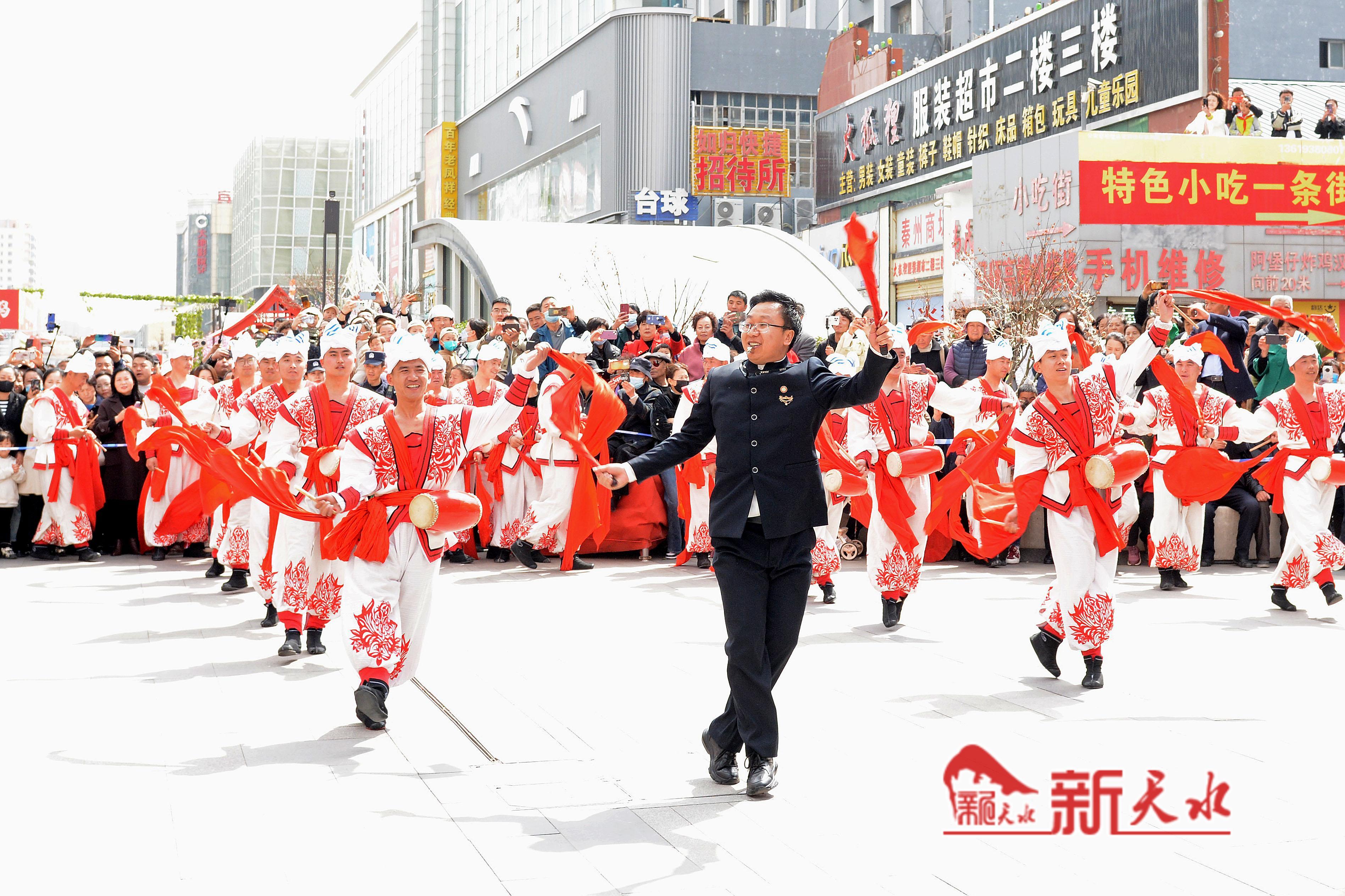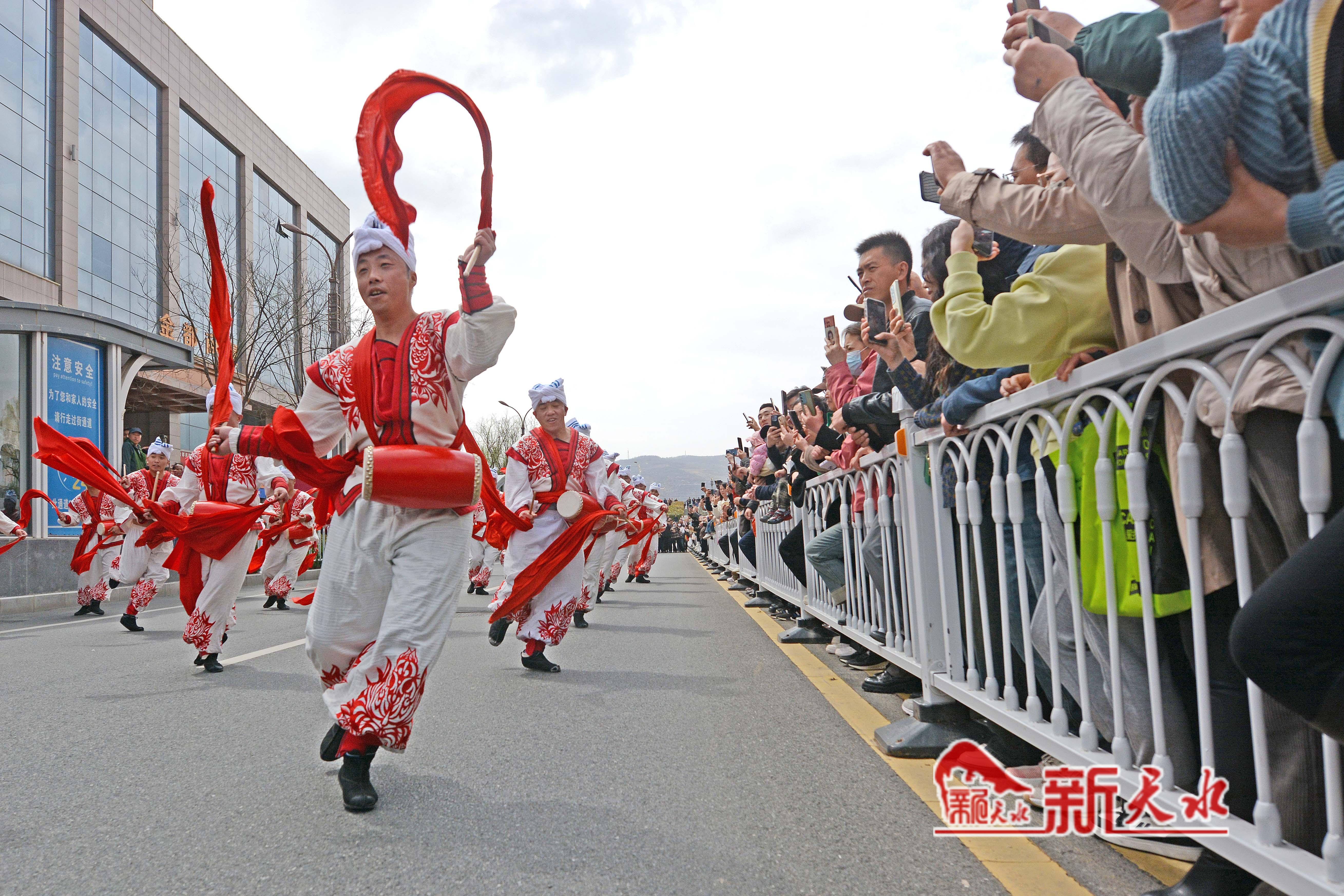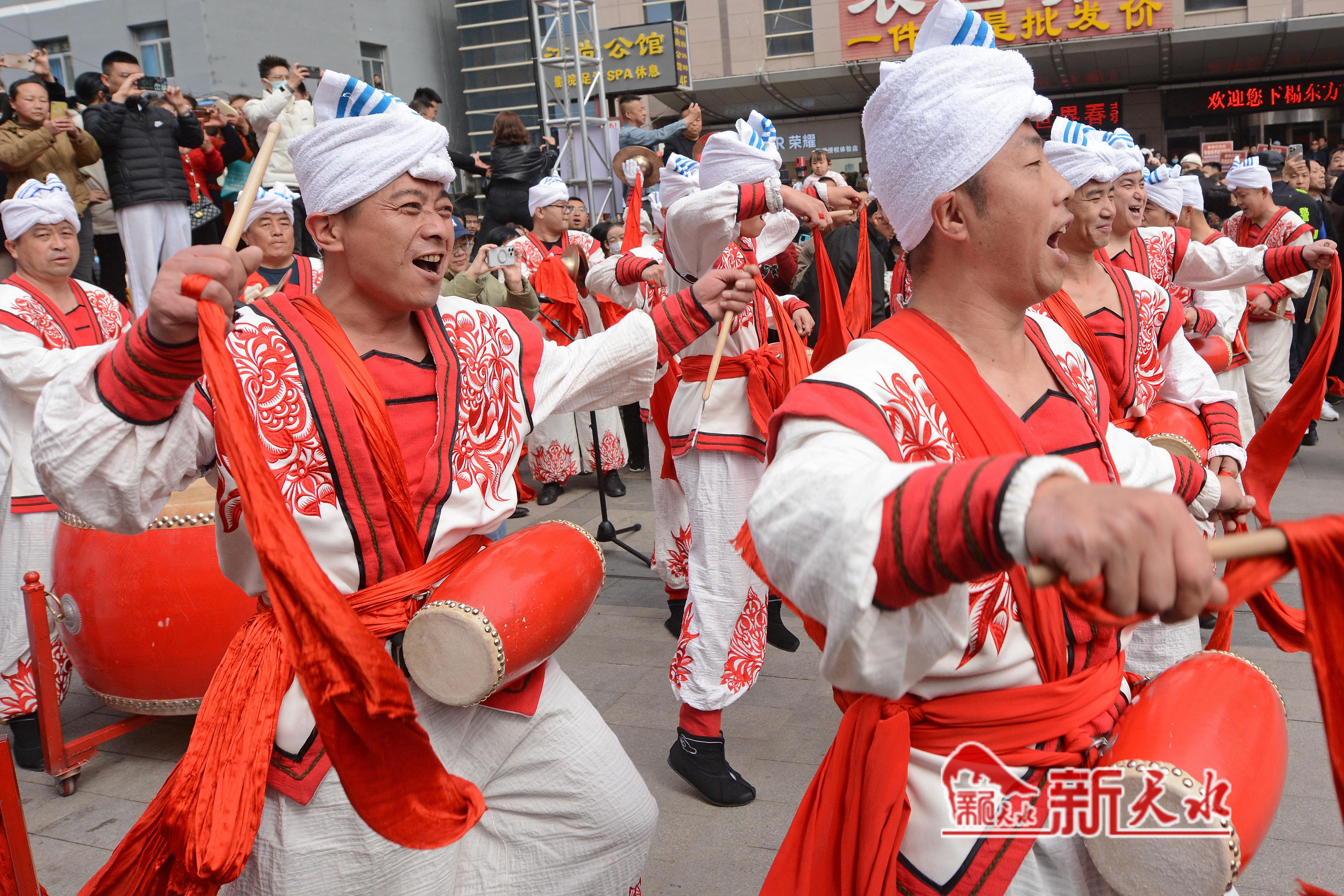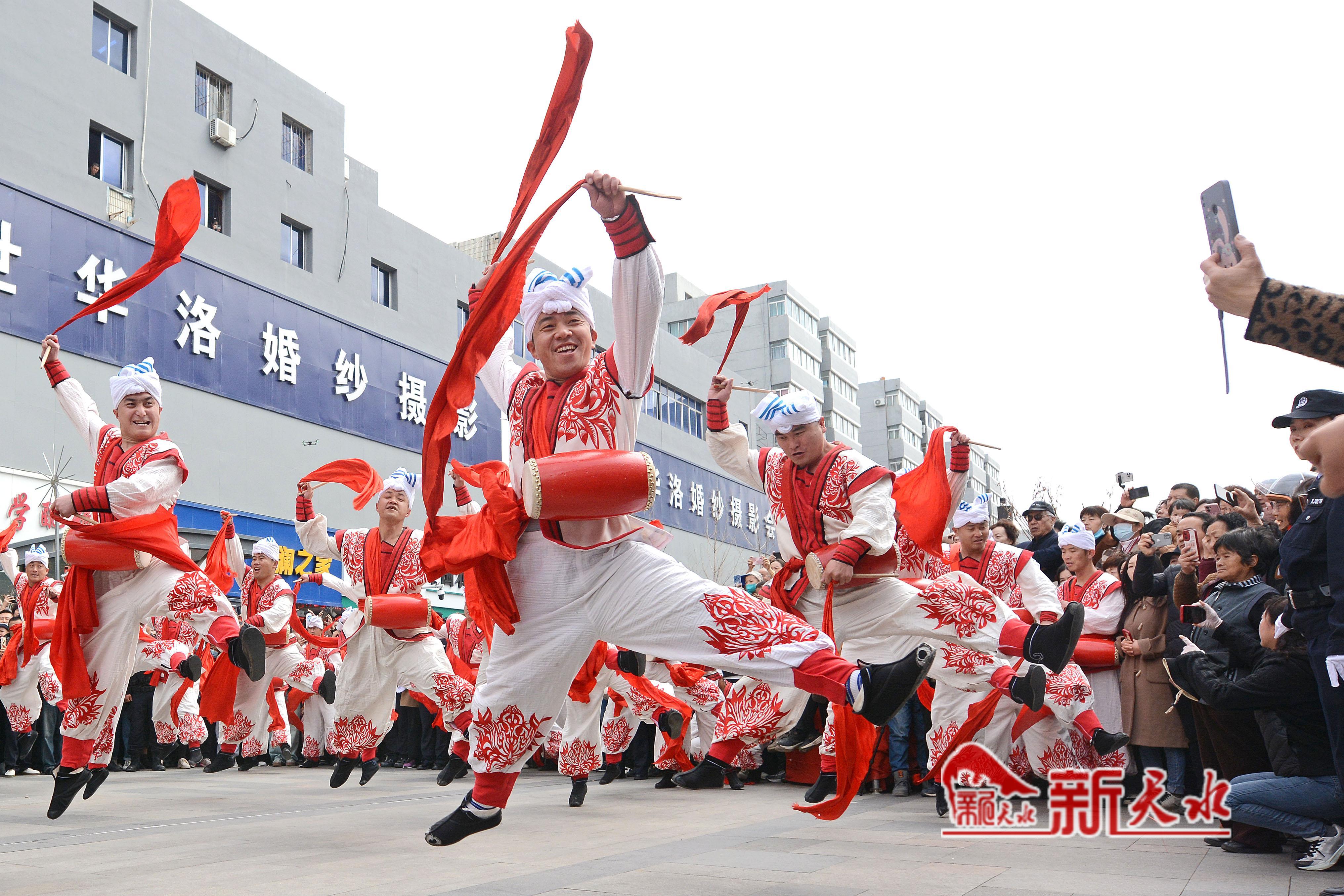 陜甘一家親 榆林橫山老腰鼓為天水麻辣燙鼓勁加油
