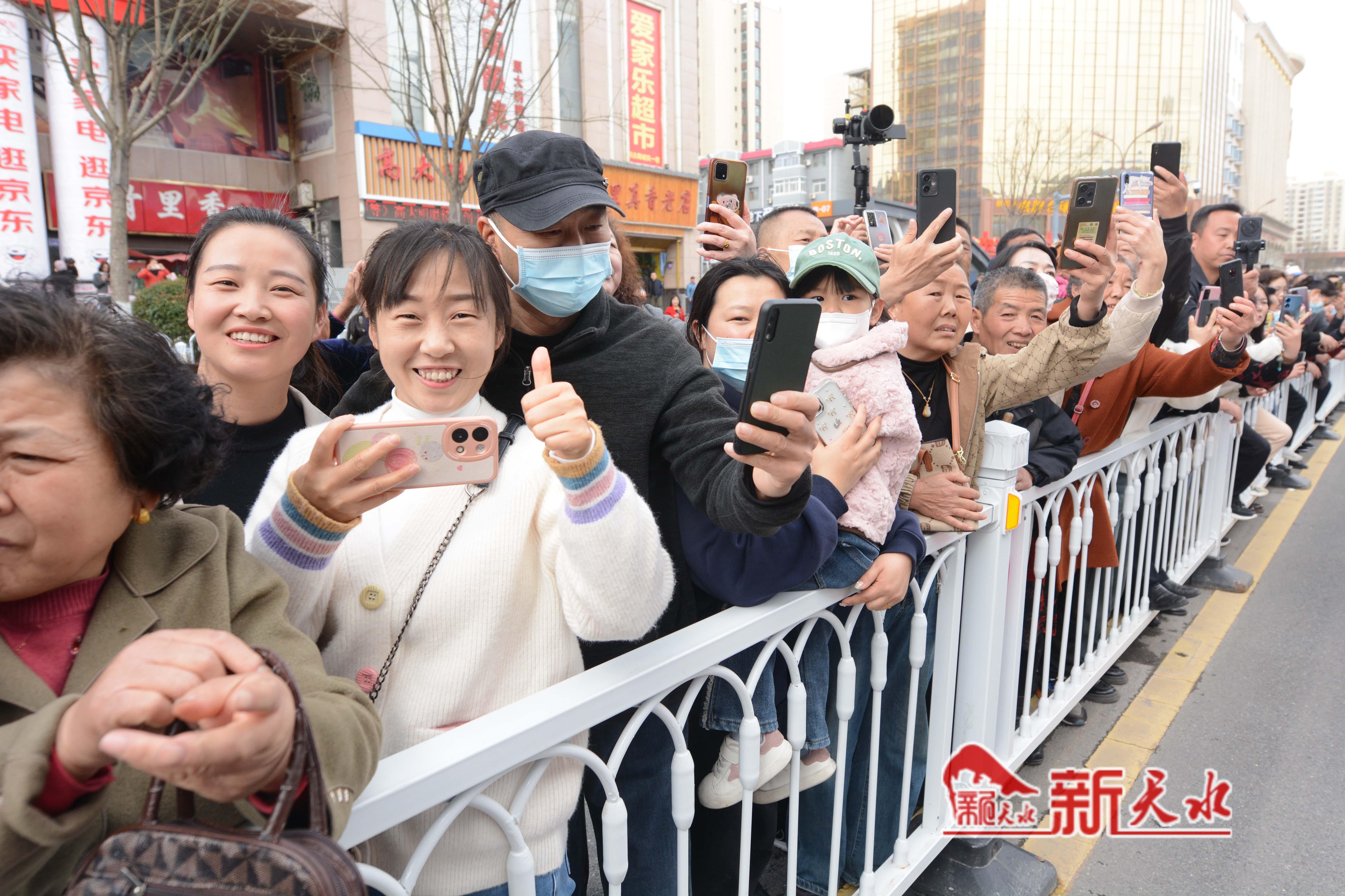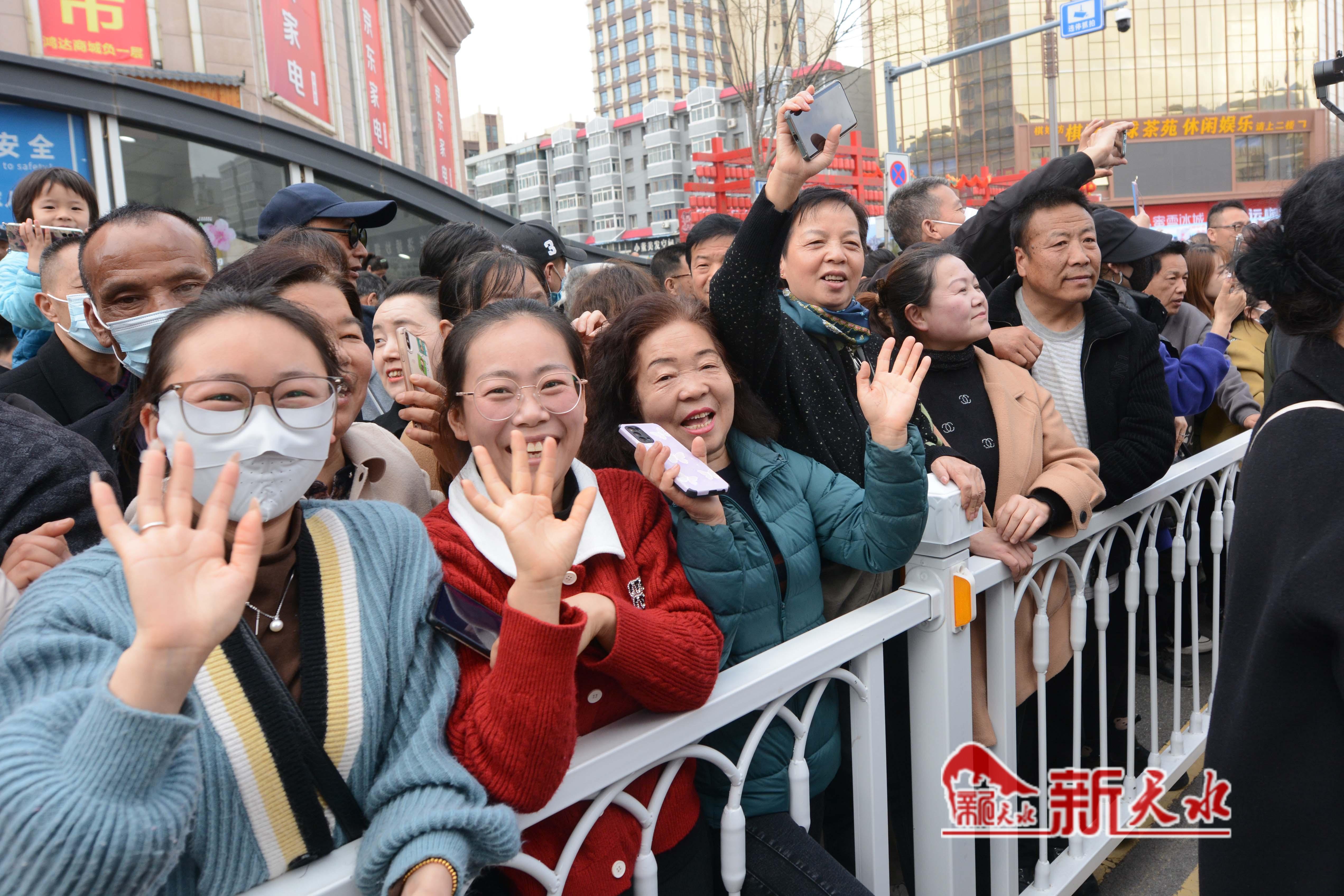 麥積區(qū)市民向陜西省榆林市橫山老腰鼓表演隊(duì)隊(duì)員揮手致意