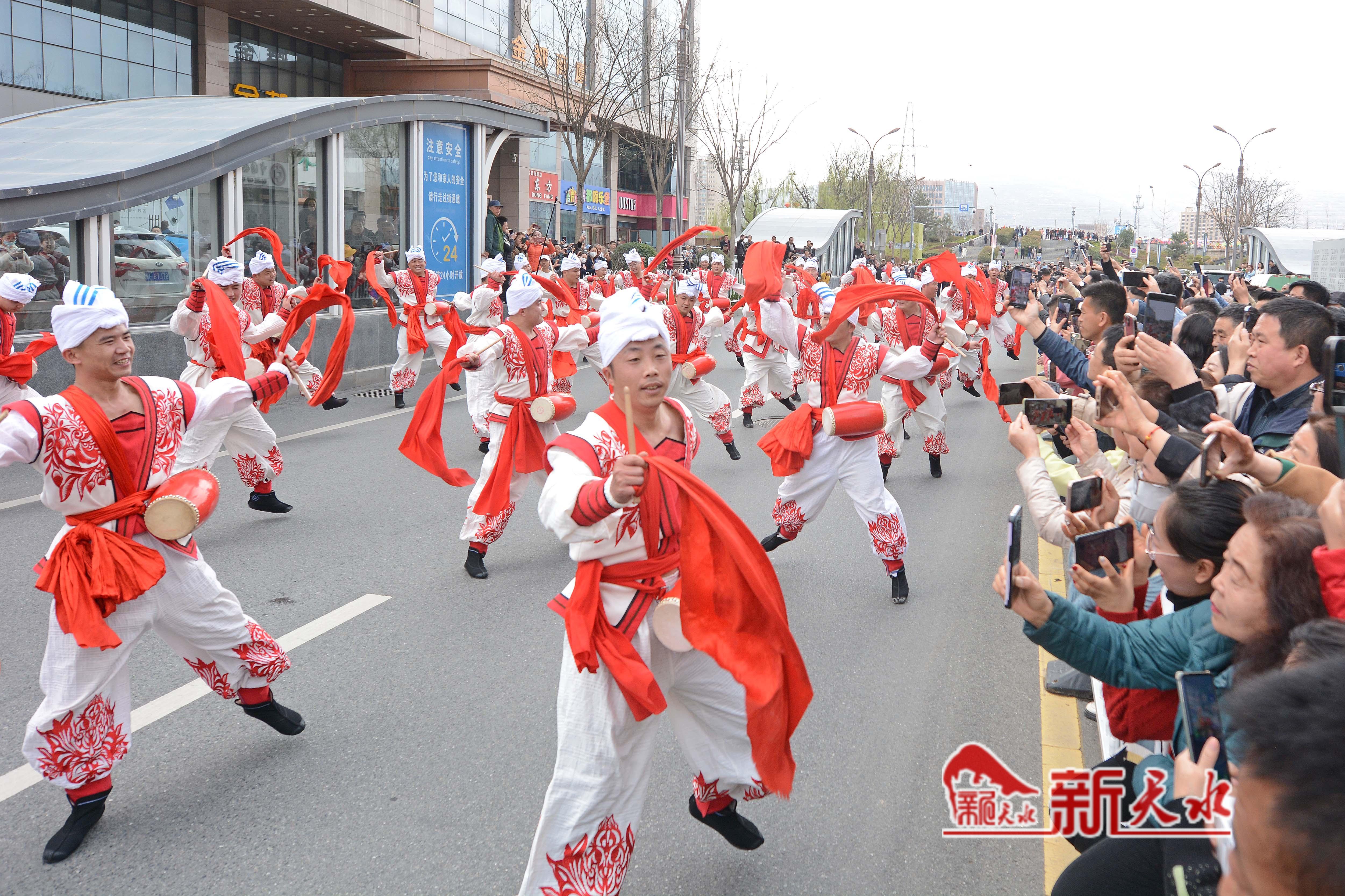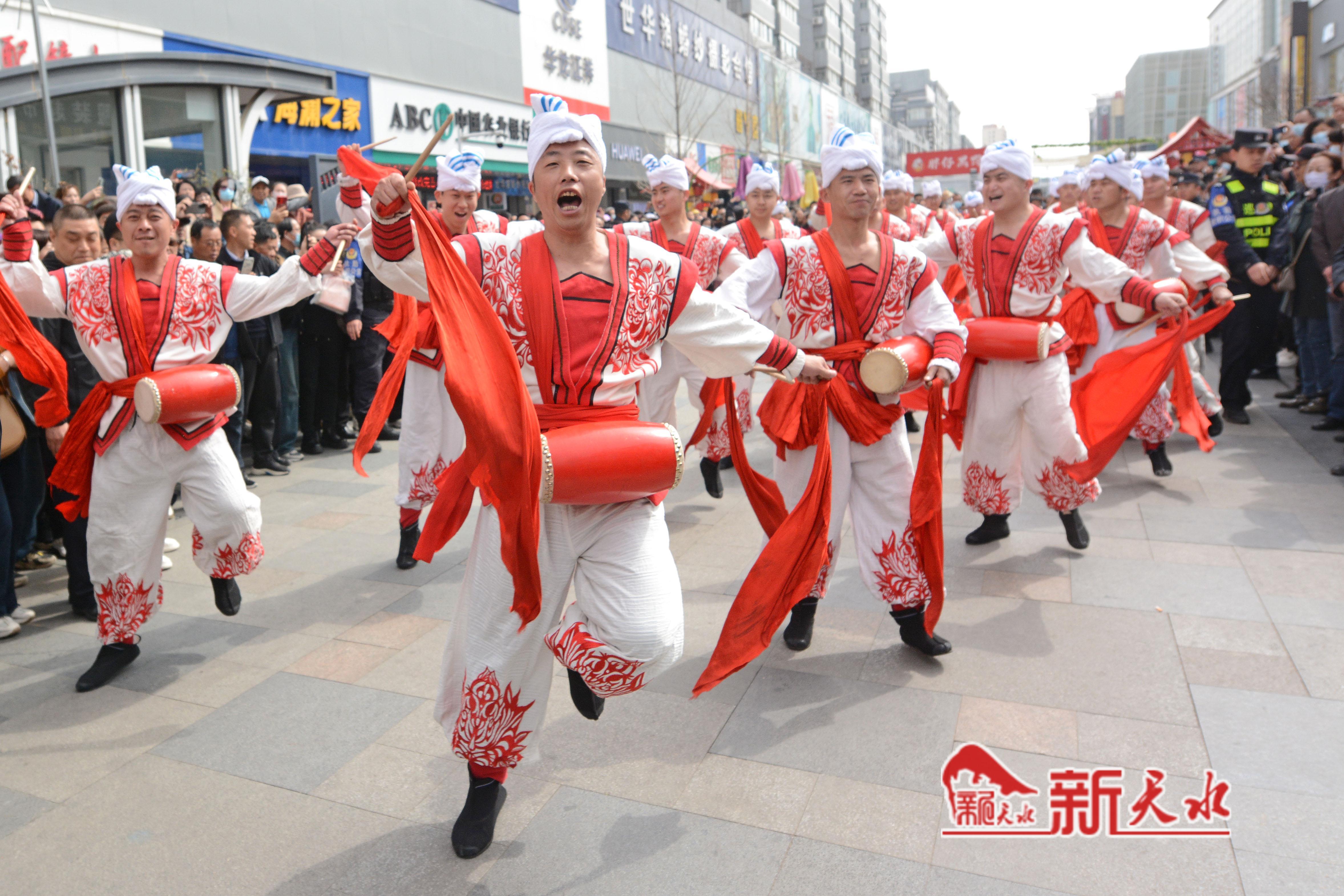 3月27日,陜西省榆林市橫山老腰鼓表演隊(duì)在天水市秦州、麥積兩區(qū)“激情鼓舞”,為天水麻辣燙鼓勁加油,體現(xiàn)陜甘一家親的深情厚意。