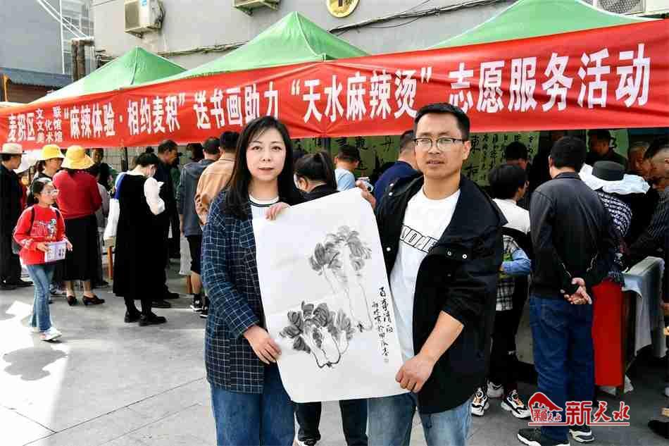 新天水訊【特約通訊員 竇耀輝】3月30日,麥積區(qū)文聯(lián)、區(qū)文化館、區(qū)美術(shù)館聯(lián)合開展“體驗(yàn)麻辣·相約麥積”送書畫助力“天水麻辣燙”志愿服務(wù)活動。