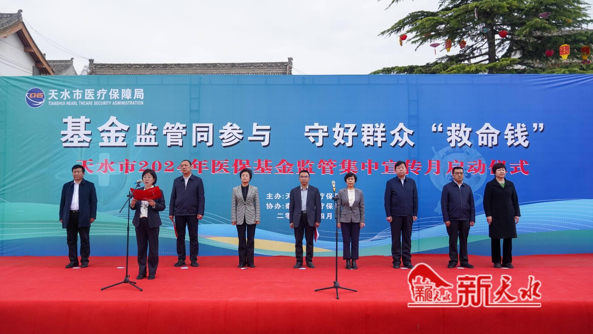 新天水訊【記者 李欣桐】4月1日,天水市2024年醫(yī)?;鸨O(jiān)管集中宣傳月活動(dòng)啟動(dòng)儀式在玉泉觀廣場(chǎng)舉行。市委常委、宣傳部部長(zhǎng)王文東宣布活動(dòng)啟動(dòng)。市人大常委會(huì)副主任沈建玲,副市長(zhǎng)汪小娟,市政協(xié)副主席何寶平出席啟動(dòng)儀式。