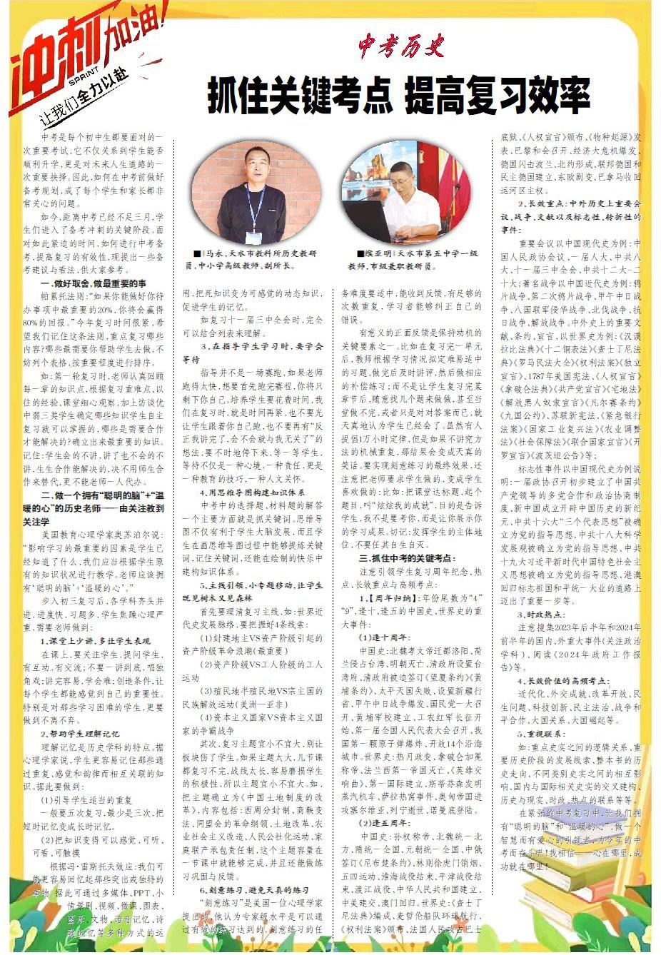 ■|馬永,天水市教科所歷史教研員,中小學高級教師,副所長。