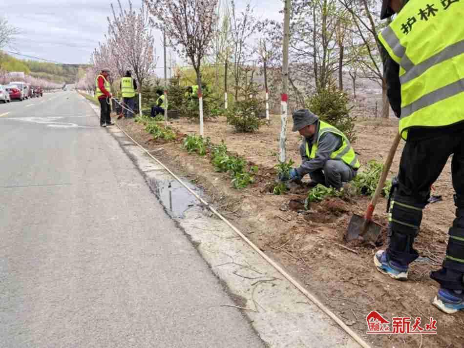 新天水訊 春風(fēng)拂面,新綠初綻。春日里,溫暖的陽光從剛栽植的綠化樹樹葉的縫隙中穿過,灑滿一地斑駁的光影。如今,走進(jìn)秦安縣千戶鎮(zhèn)涇甘公路(S304省道)沿線以及所有通村公路,只見郁郁蔥蔥,生態(tài)優(yōu)美。尤其是道路兩側(cè)綠化帶栽植的一棵棵紅葉李、一株株月季和鳶尾等高低相間、錯落有致,裝扮出一條條美不勝收的美麗道路。