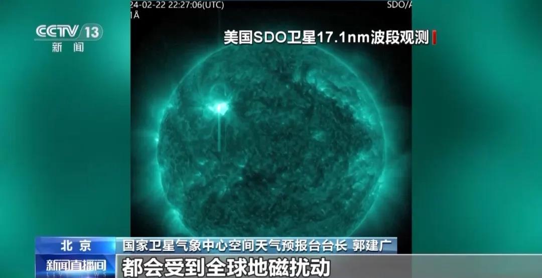 2024年2月22日22時(shí)27分,太陽(yáng)爆發(fā)了一個(gè)強(qiáng)耀斑(X6.3級(jí))