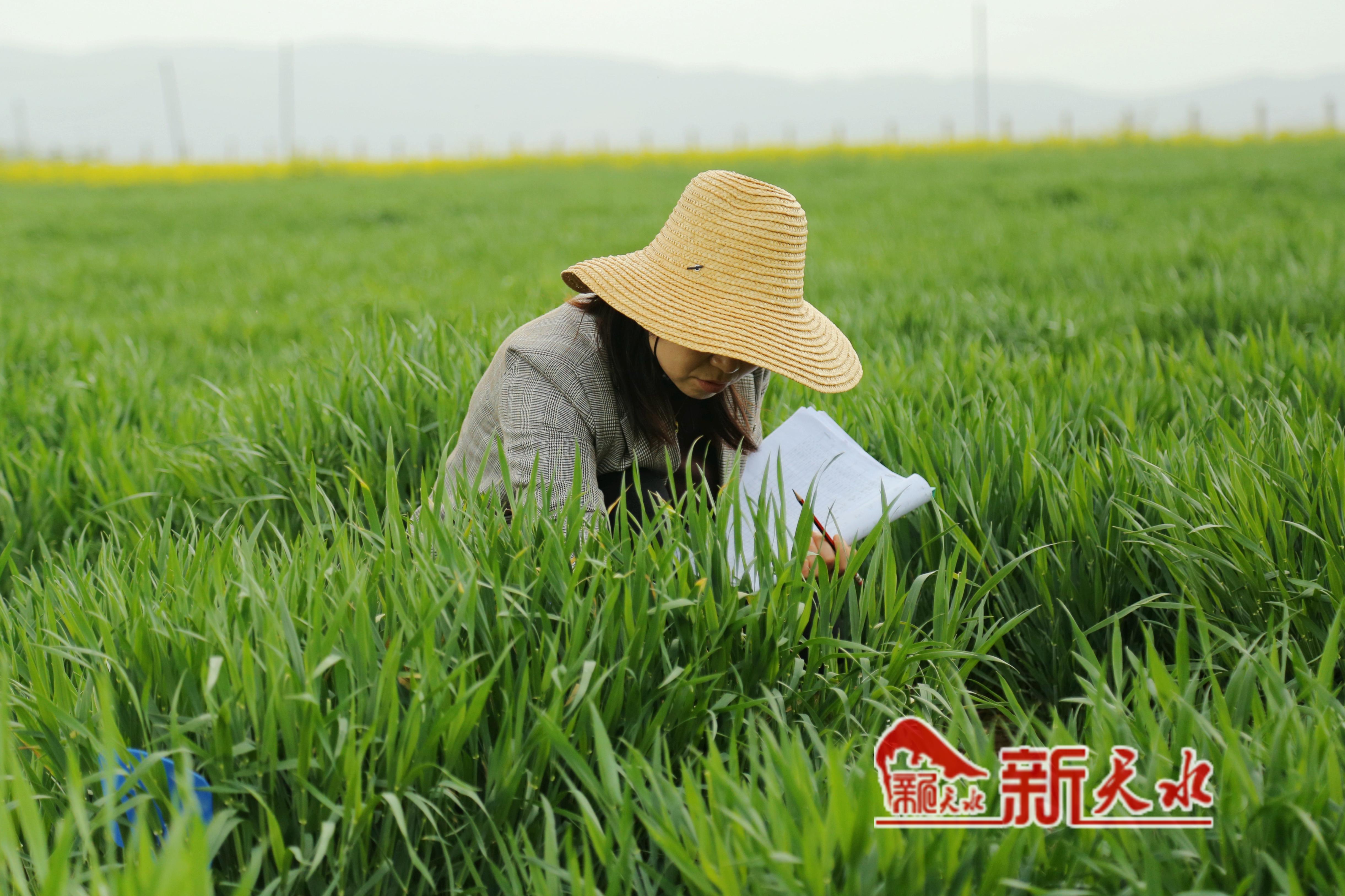 在天水市農(nóng)科所中梁試驗站的育種基地里,半米多高的麥苗隨風搖曳、綠波蕩漾,市農(nóng)科所小麥遺傳改良創(chuàng)新團隊的工作人員穿行在麥田里,或埋頭查看秧苗,或奮筆疾書記錄,為田間正處于孕穗階段的2000多份育種材料“把脈問診”,做好育種標記。