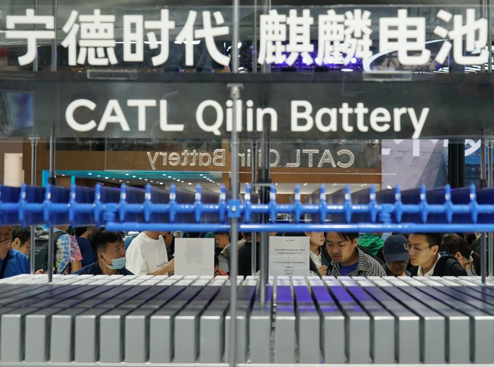 4月30日,在北京車展上,觀眾在寧德時(shí)代展區(qū)參觀。新華社記者 張晨霖 攝