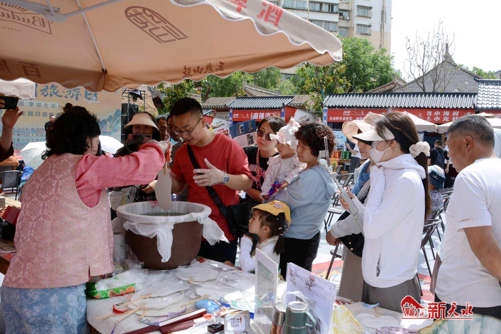 宣傳活動(dòng)中,秦州區(qū)文旅局文化旅游發(fā)展中心負(fù)責(zé)人推介了秦州區(qū)的特色旅游資源、旅游產(chǎn)品。活動(dòng)現(xiàn)場(chǎng),還設(shè)置了多個(gè)展示豐富旅游資源和風(fēng)土人情的互動(dòng)市集,包含非遺展示、農(nóng)特產(chǎn)品、文創(chuàng)手工等,為游客提供了一個(gè)互動(dòng)、體驗(yàn)、交流的平臺(tái)。