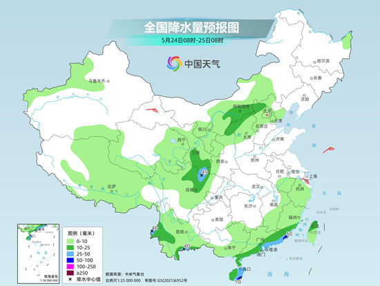 后天,內(nèi)蒙古河套和中部偏南地區(qū)、山西北部、河北北部、甘肅南部、四川北部、福建南部、廣東南部、海南島以及云南西部和南部等地的部分地區(qū)有中到大雨,其中,福建南部、廣東東部、海南島東南部等地局地有暴雨。