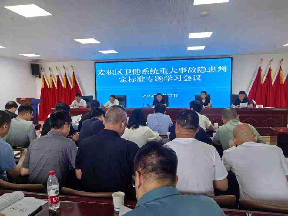 新天水訊 5月27日,麥積區(qū)衛(wèi)健局召開全區(qū)衛(wèi)健系統(tǒng)重大事故隱患判定標(biāo)準(zhǔn)專題學(xué)習(xí)會(huì)議,深入開展重大事故隱患判定標(biāo)準(zhǔn)落地行動(dòng)和精準(zhǔn)檢查執(zhí)法能力建設(shè),切實(shí)提升全區(qū)衛(wèi)健系統(tǒng)重大事故隱患辨識(shí)和判定能力。