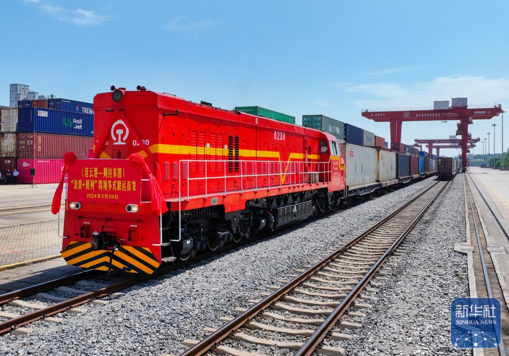 6月26日,“韓國-連云港-中亞”國際多式聯(lián)運(yùn)班列從中哈連云港物流合作基地出發(fā),駛往哈薩克斯坦、烏茲別克斯坦。班列運(yùn)載的55個大柜此前于6月13日從韓國境內(nèi)發(fā)出,經(jīng)釜山港海運(yùn)抵達(dá)連云港后轉(zhuǎn)由鐵路運(yùn)輸。新華社記者 季春鵬 攝