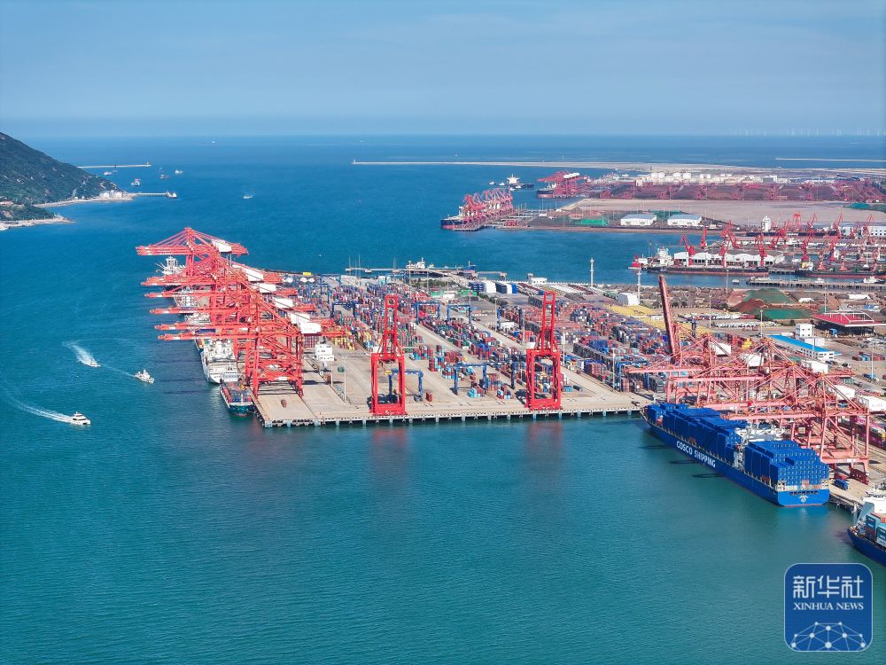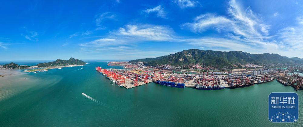 6月26日,貨輪??吭谶B云港港集裝箱碼頭(無人機(jī)照片)。新華社記者 季春鵬 攝