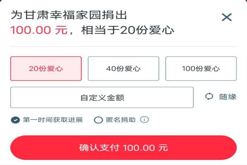 第四步:設(shè)置好捐款金額并確認(rèn)金額無(wú)誤后,點(diǎn)擊下方的“確認(rèn)支付”即可完成捐款。