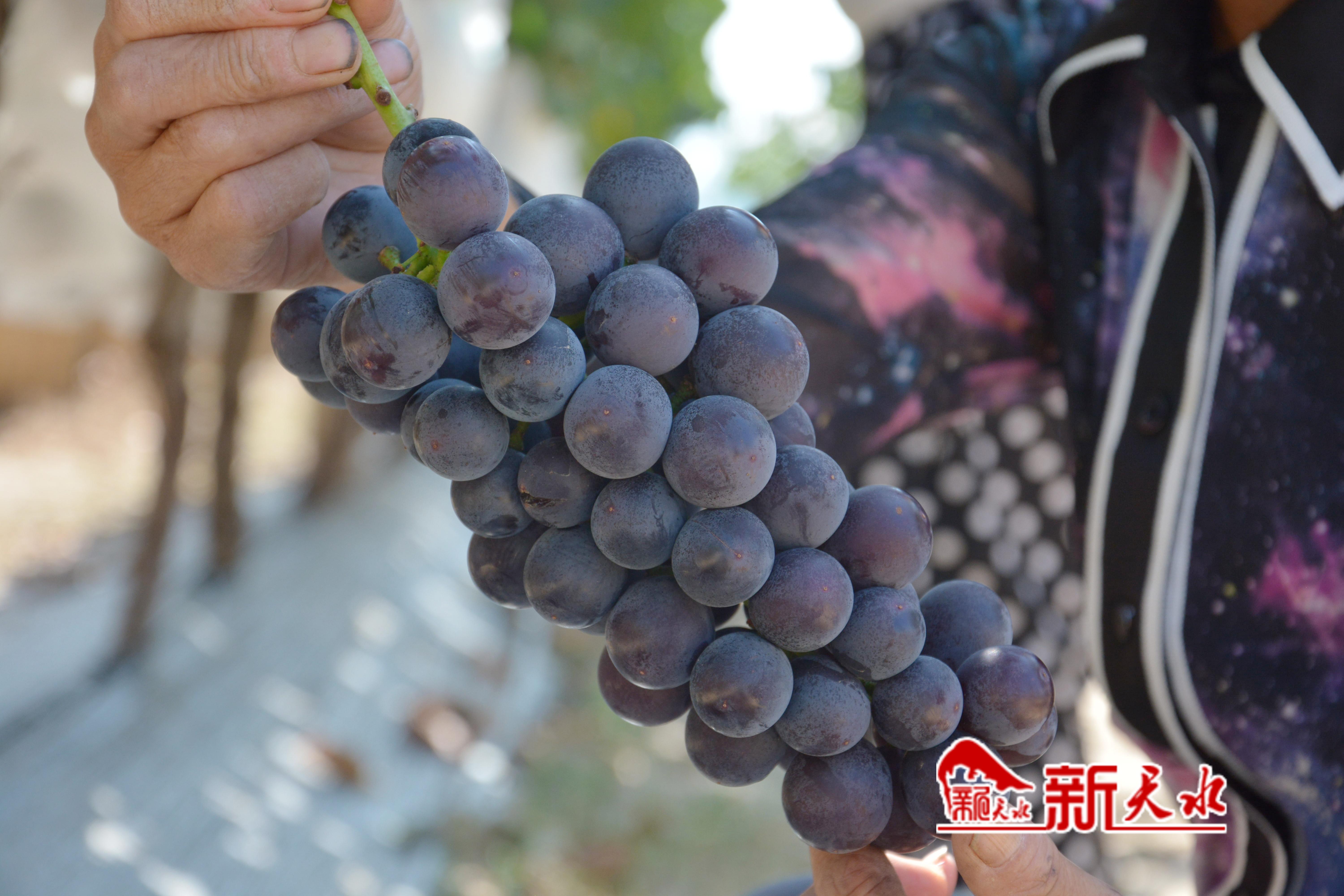 8月27日一早,記者來到新陽鎮(zhèn)趙家莊村,只見村民何紅東在自家的家庭農(nóng)場里忙著采收葡萄。葡萄園,一排排整齊有序的葡萄架,藤蔓間掛滿了沉甸甸的果實,紫色的“巨峰”葡萄如同寶石般璀璨奪目。