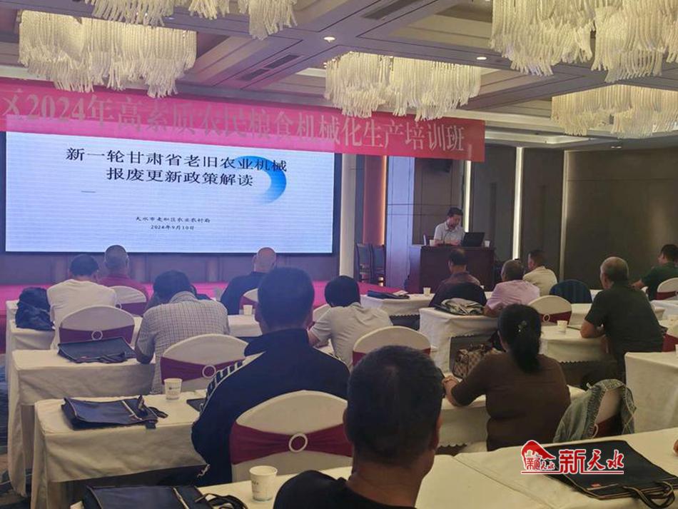 新天水訊 近日,麥積區(qū)舉辦新一輪甘肅省老舊農(nóng)業(yè)機械報廢更新政策解讀培訓(xùn)班,以貫徹落實國務(wù)院關(guān)于推動大規(guī)模設(shè)備更新和消費品以舊換新工作決策部署,進一步加快老舊農(nóng)業(yè)機械報廢更新進度、推進農(nóng)業(yè)機械裝備更新?lián)Q代、促進農(nóng)機安全生產(chǎn)和節(jié)能減排。