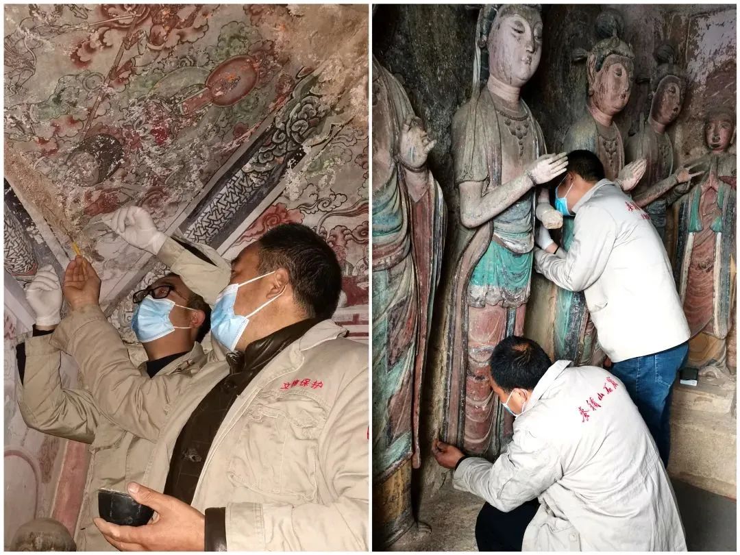 “風餐露宿、青燈黃卷”“擇一事、終一生”,70余年來,麥積山石窟保護工作不斷推進、邁向深入,先后開展了本體保護修復、滲水治理、瑞應寺古建筑修復、棧道加固、監(jiān)測預警體系建設等。黨的十八大以來,特別是自2017年整編制劃歸敦煌研究院管理以來,麥積山石窟的保護工作持續(xù)加速。據(jù)了解,自2017年以來,麥積山石窟累計申請各類文物保護工程項目20余項,涉及本體保護、棧道穩(wěn)定勘察評估、地質(zhì)災害調(diào)查、窟門研究、考古報告編寫、數(shù)字化保護、規(guī)劃修編等內(nèi)容,其中本體保護涉及28個洞窟塑像壁畫的保護修復。參與國家重點研發(fā)計劃“石窟寺本體劣化風險監(jiān)測分析技術和裝備研發(fā)”、國家自然科學基金聯(lián)合基金項目“麥積山石窟地震災害風險評價與防治研究”等多項國家和省部級課題研究,加大科技保護力度,不斷提升麥積山石窟的保護能力和水平。