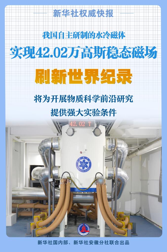 9月22日,中國科學(xué)院合肥物質(zhì)科學(xué)研究院強磁場科學(xué)中心自主研制的水冷磁體成功產(chǎn)生42.02萬高斯的穩(wěn)態(tài)磁場,打破了2017年美國國家強磁場實驗室水冷磁體創(chuàng)造的41.4萬高斯的世界紀(jì)錄。
