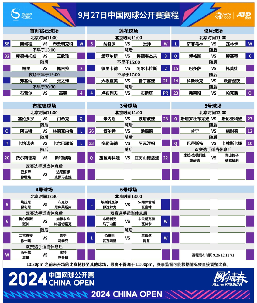 明天(9月27日),2024中網(wǎng)女單下半?yún)^(qū)第二輪即將開戰(zhàn),男單首輪也將迎來眾多名將登場。