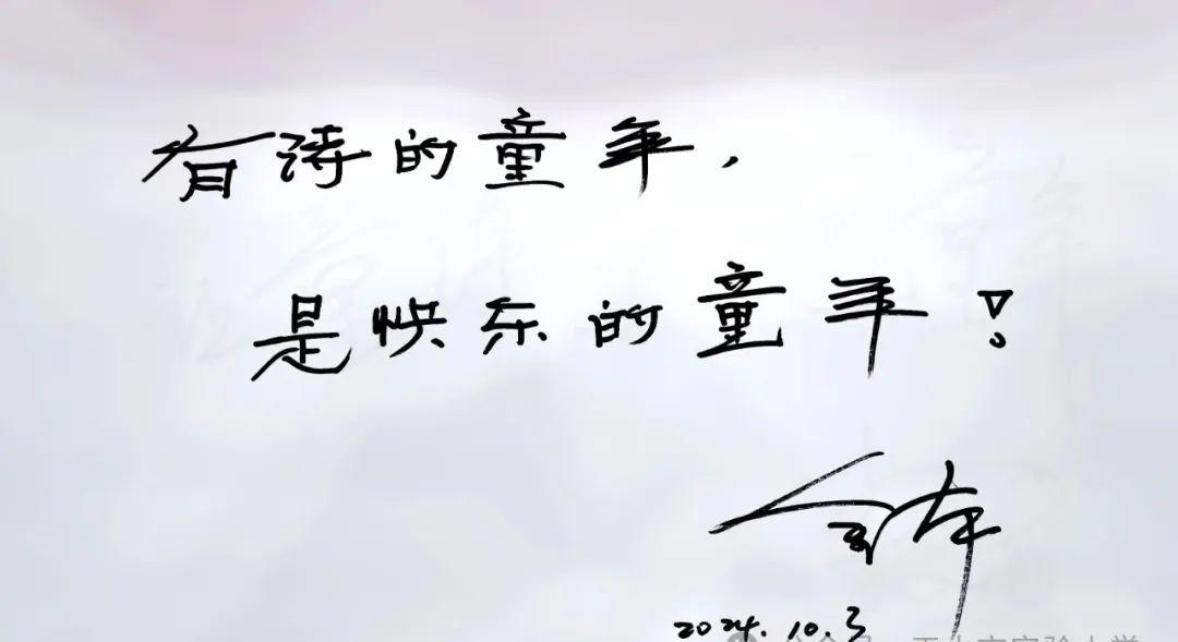 2024年10月,《少年詩刊》名譽主編金本先生在湖南岳陽為天水市實驗小學(xué)同學(xué)題詞:“有詩的童年,是快樂的童年”,以此鼓勵孩子們熱愛詩歌,享受詩歌帶來的快樂。