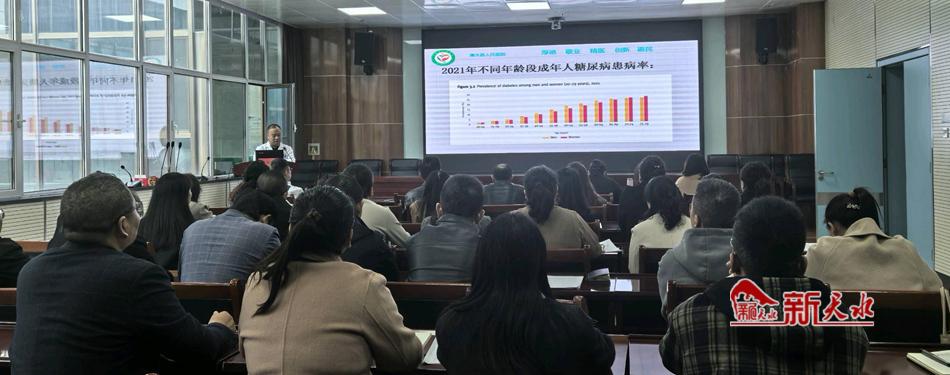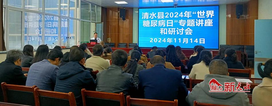 當(dāng)日,清水縣還舉辦了2024年“世界糖尿病日”主題講座和研討會,清水縣人民醫(yī)院內(nèi)分泌科、腎病科主任劉龍斌,對2型糖尿病的流行病學(xué)、發(fā)病機理、飲食及治療誤區(qū)、糖尿病并發(fā)癥、治療藥物發(fā)展史等內(nèi)容,結(jié)合臨床實踐進行了精彩的專業(yè)講解,縣鄉(xiāng)醫(yī)療機構(gòu)各單位分管領(lǐng)導(dǎo)、公衛(wèi)專干40多人參加了講座。