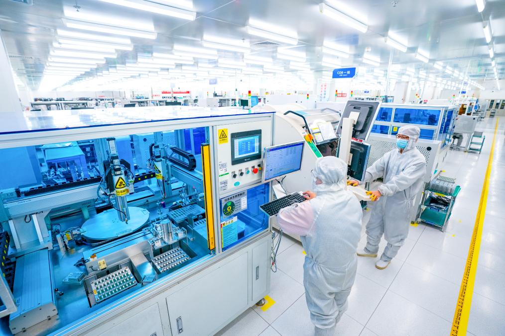 2月5日,在位于武漢中國(guó)光谷的光電器件研發(fā)制造商——武漢光迅科技股份有限公司的生產(chǎn)車(chē)間里,工作人員在光模塊生產(chǎn)線上作業(yè)。新華社記者 肖藝九 攝