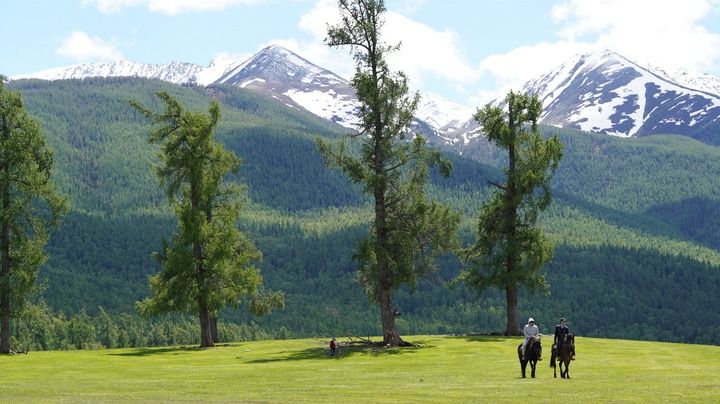 2024年6月6日,在新疆阿勒泰地區(qū)哈巴河縣,游客在騎馬游玩。新華社記者 阿曼 攝