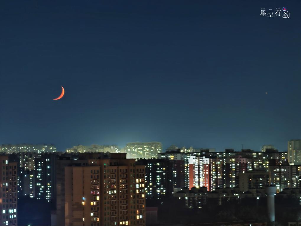 2024年11月5日在北京市豐臺區(qū)拍攝的金星伴月。(王俊峰攝)
