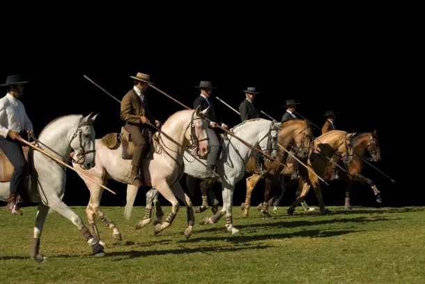 葡萄牙馬術的特征包括騎手在馬鞍上的姿勢、傳統(tǒng)服飾以及馬具的使用。其核心是騎手與馬匹之間的和諧關系、雙方之間的深切關聯(lián),以及對動物及其福祉的尊重。這一傳統(tǒng)要求馬匹動作靈活且易于駕馭,如純種盧西塔諾馬。作為一種集體認同感的來源,此習俗在朝圣活動、年度集市和其他社會活動中都有體現(xiàn)。