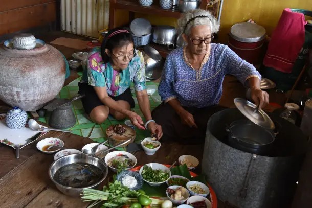 冬陰功湯是泰國的一道傳統(tǒng)蝦湯,做法是將鮮蝦與香草一同烹煮,并佐以當?shù)卣{料調味。此湯以香氣獨特和色彩鮮艷著稱,且融合了甜、酸、咸、辣、奶香與微苦等多種味道。據(jù)說,這道湯能夠增進活力和健康,尤其適合在雨季享用。冬陰功湯體現(xiàn)了在泰國中部的河畔佛教徒社區(qū)的烹飪智慧,以及他們在自然環(huán)境與藥草方面的傳統(tǒng)知識。
