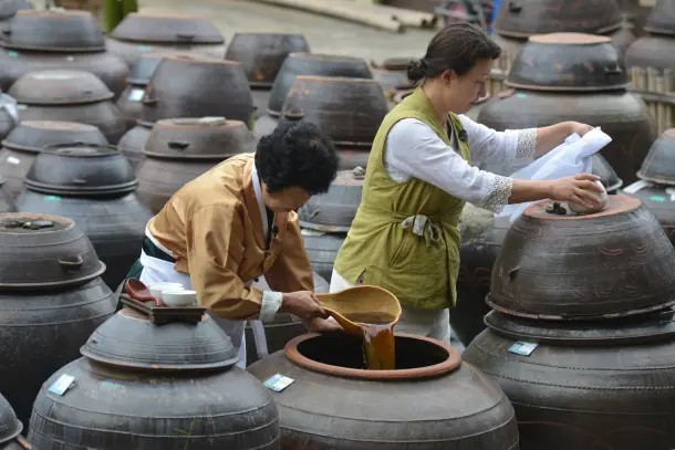 醬是韓國飲食的基礎,包括大醬、醬油、辣椒醬等發(fā)酵調味品。這些醬料可以搭配蔬菜、魚類和肉類食用,也常用于食品的保存。醬的配方因家庭而異,被認為承載著每個家族的歷史和傳統(tǒng)。有些家庭會儲存陳年醬油長達數(shù)十年,以保持食物風味的一致性。