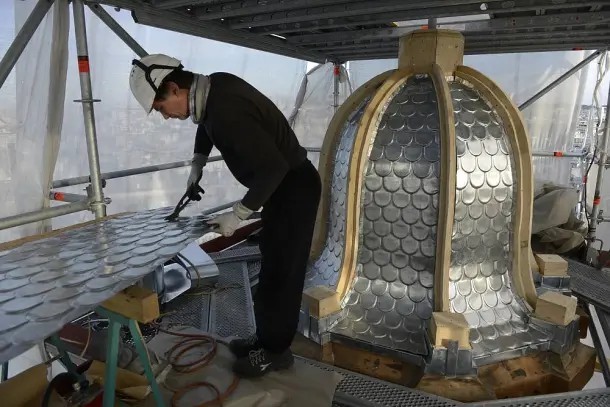 巴黎鋅屋頂技藝涵蓋了修復奧斯曼風格建筑屋頂所需的知識與技能。修復過程包括拆除老舊鋅片,測量,使用巴黎式折疊機定制切割新鋅片,以及將其組裝并固定在屋頂上。因近80%的屋頂覆蓋鋅片,巴黎成為相關技藝的活態(tài)檔案,而這些技藝也塑造了其獨特的城市景觀魅力。